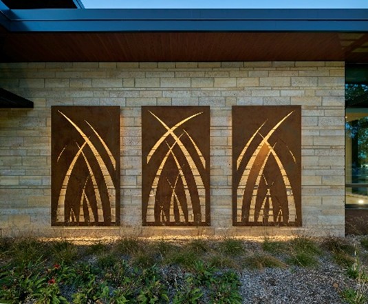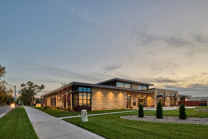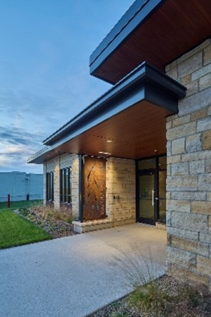 Kasota Stone limestone shapes the building’s façade, creating a warm, inviting, and visually striking presence that reflects the community it serves. The design draws inspiration from Prairie Style architecture, with clean horizontal lines, natural materials, and a strong connection to the surrounding landscape (a nod to Frank Lloyd Wright’s timeless approach). Thoughtful design details balance beauty with durability, making the space both functional and welcoming.
