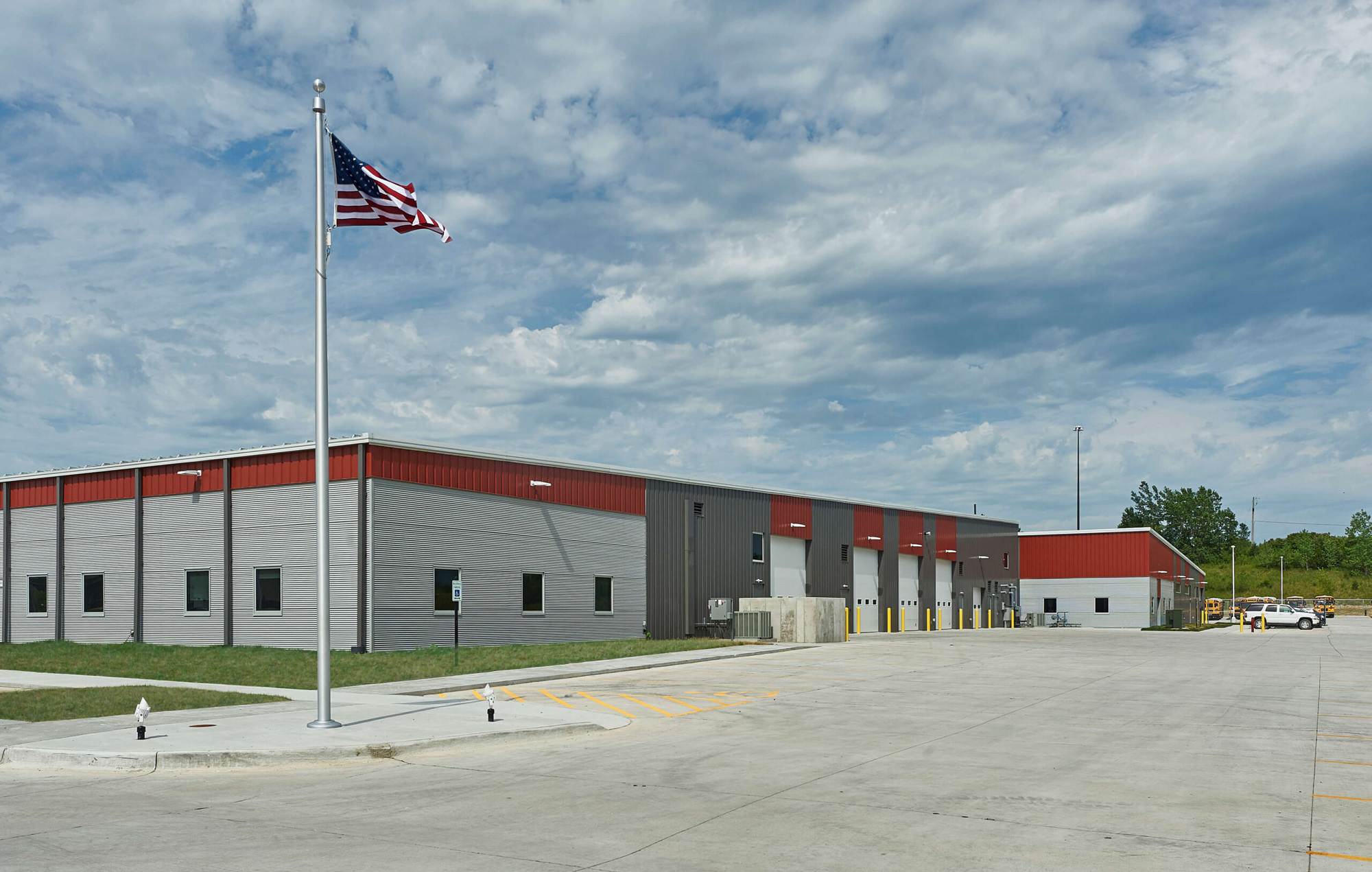 This simple yet thoughtfully designed facility provided the Ames CSD with a new building to service its fleet of buses and accommodate maintenance, inspection, fleet management, and storage needs. The layout provided for an efficient, seamless flow of vehicles and equipment, all consolidated into one facility. To maximize square footage and minimize building costs, a pre-engineered steel building type was selected. Significant consideration was given to the unimpeded flow of vehicles into and out of the building, while providing strategically placed storage throughout. Management offices are also included in the facility, allowing staff to monitor and command the movement of the bus and maintenance fleet as well as oversee the maintenance needs of the district’s multiple buildings.