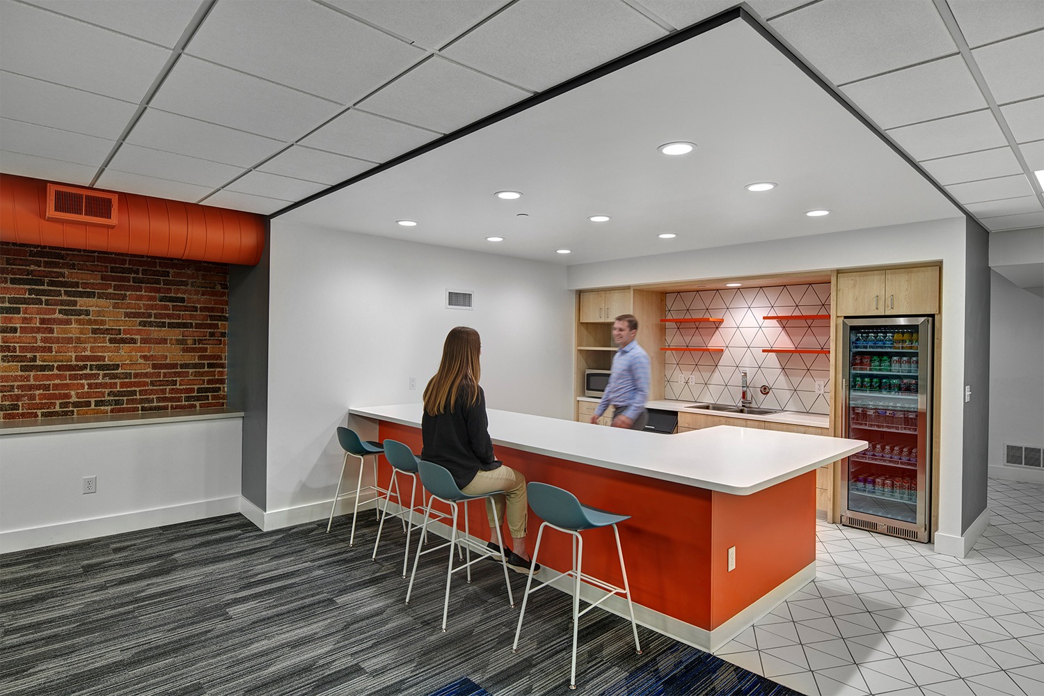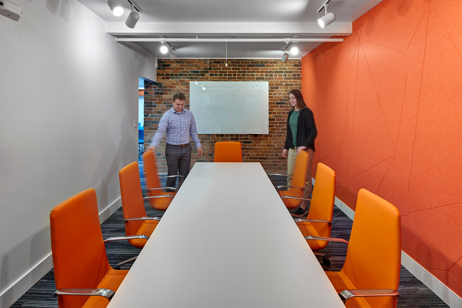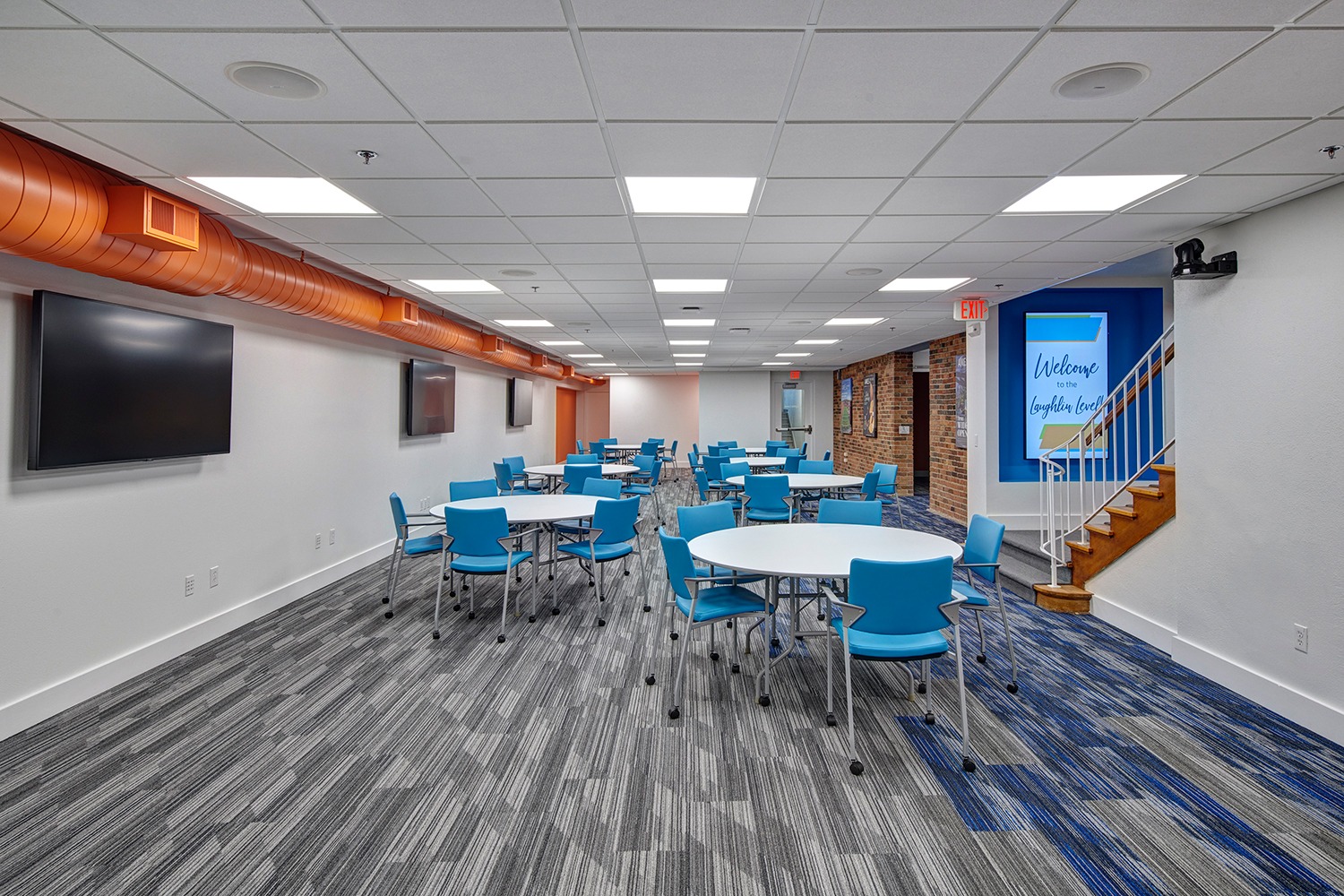 10Fold collaborated with the Ames Regional Economic Alliance for an interior renovation of the Laughlin Level in their downtown Ames building. Formerly used as a commercial office space over 10 years prior, this level required major improvements to meet the new programmatic needs of the Chamber as well as meet current standards of commercial conference space. The new program includes a large conference space, private meeting spaces, and a serving kitchen coupled with a large common space for hosting community events. Other improvements include new gender-neutral restrooms, storage space for tables and chairs, and the addition of an elevator providing accessibility for all users in the building. The interior improvements resulted in a contemporary yet welcoming space for visitors and staff.