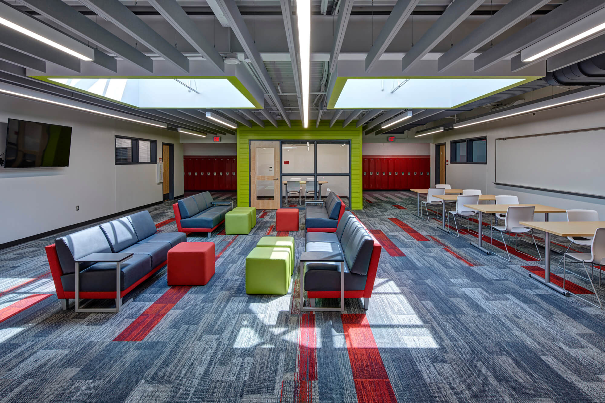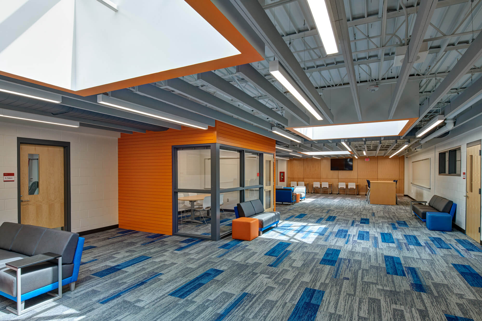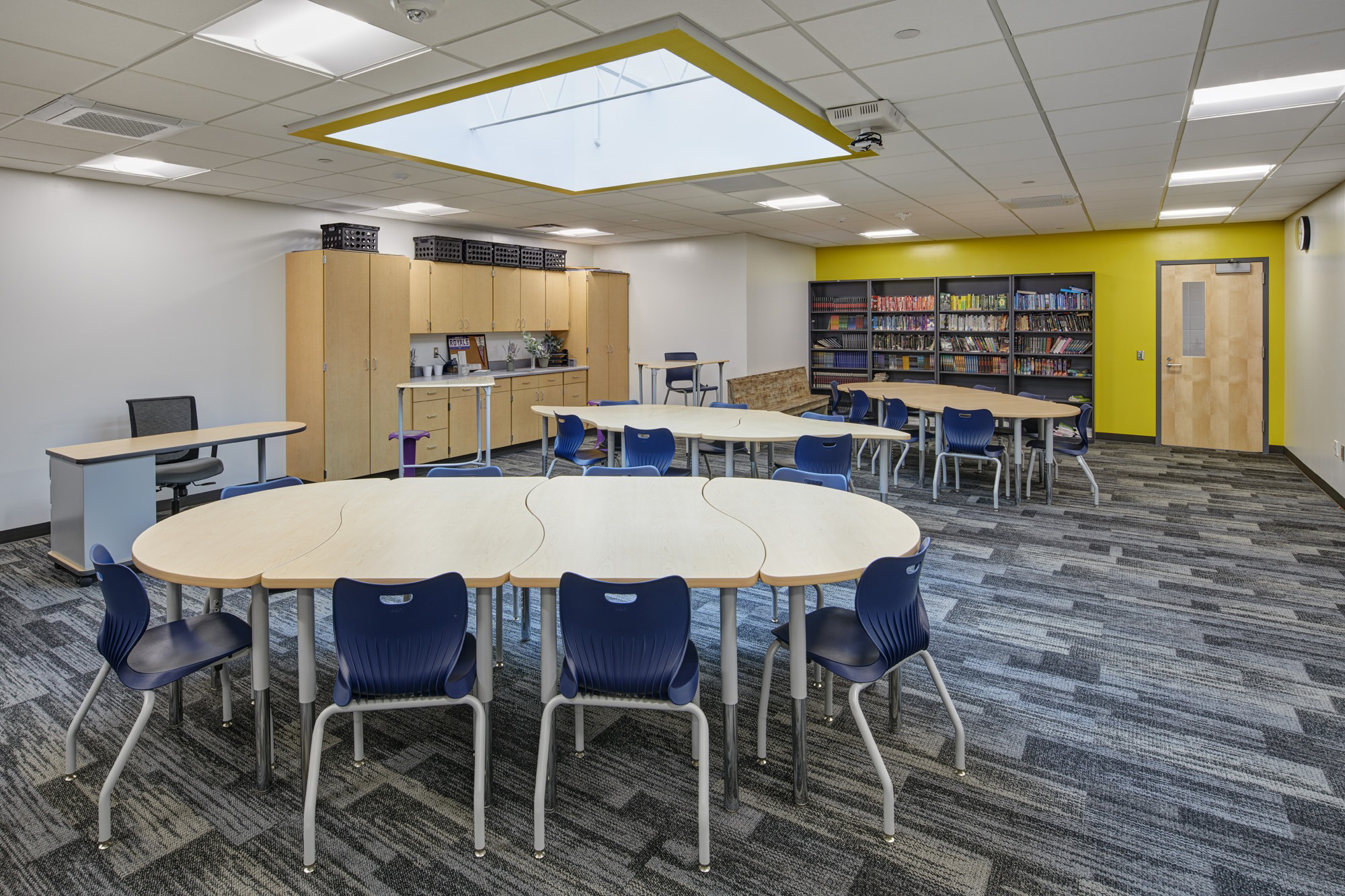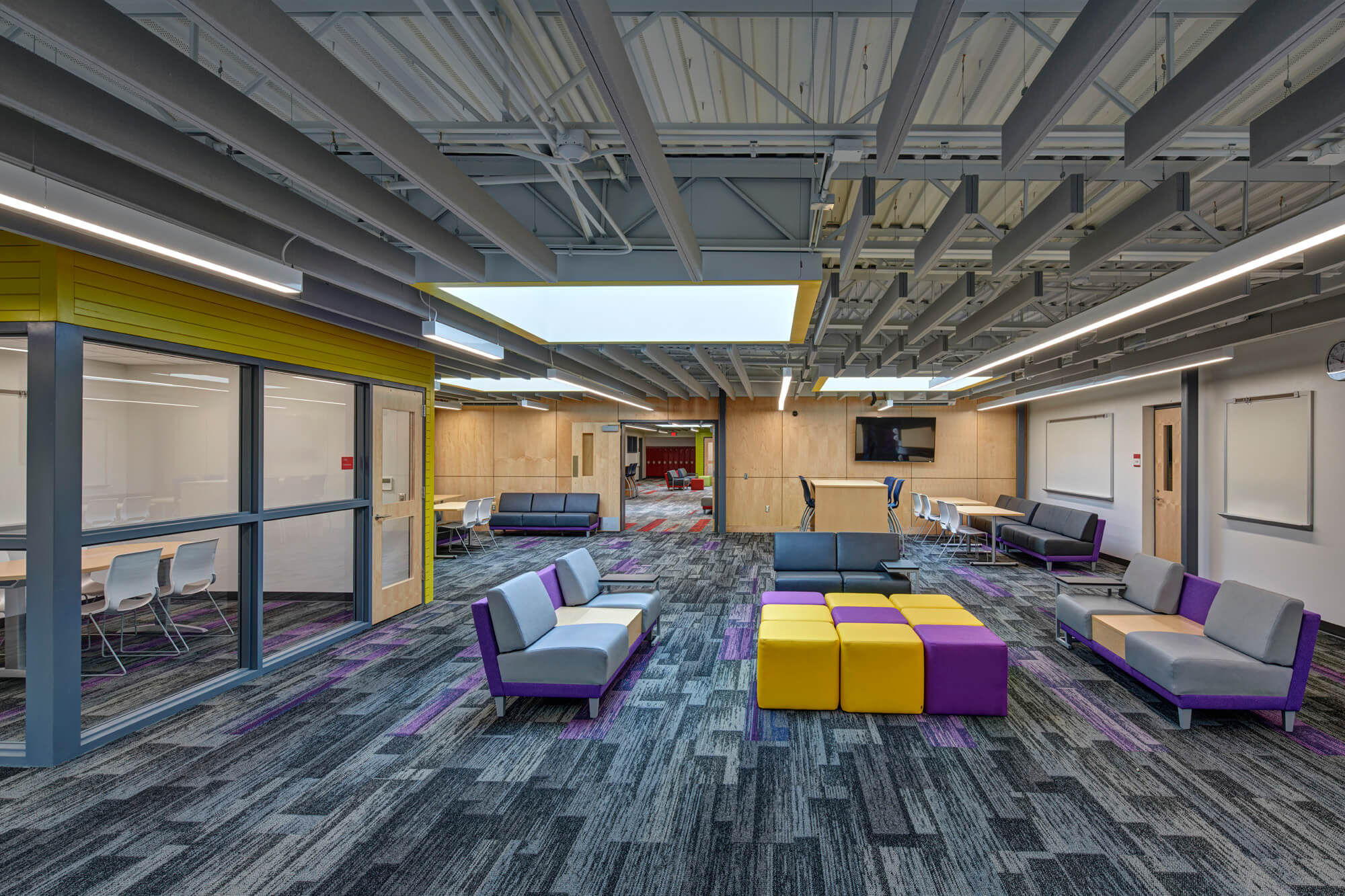 The 21st century principles of collaboration, communication, creativity, and critical thinking were incorporated into the design via the insertion of technology-rich collaboration zones within grade-specific small learning communities. These zones promote cross-disciplinary education and enhance interaction between students and teachers as well as provide a unique setting for learning, social interaction and development.