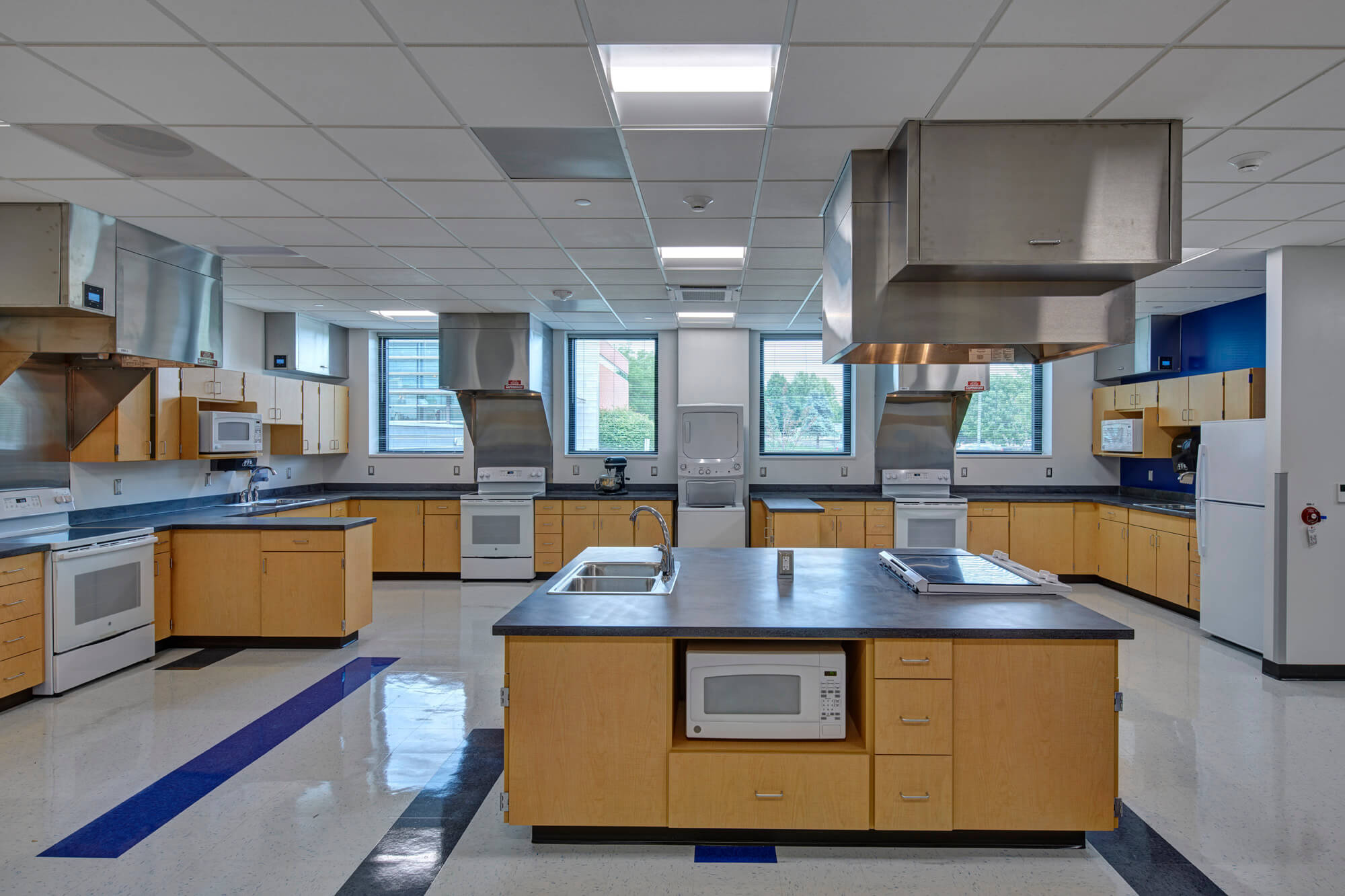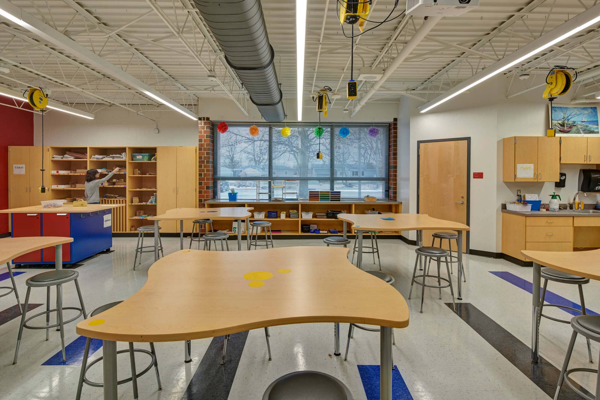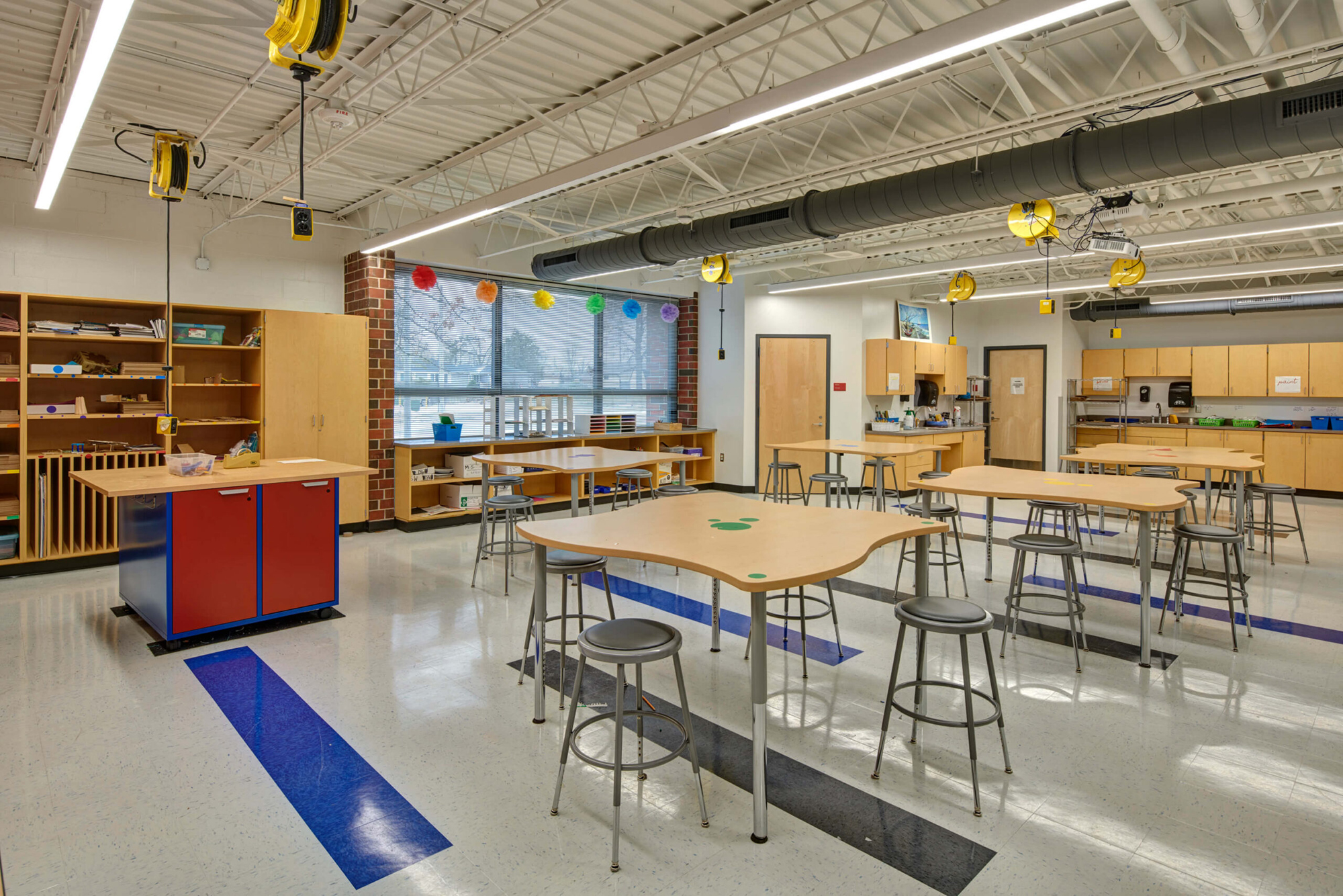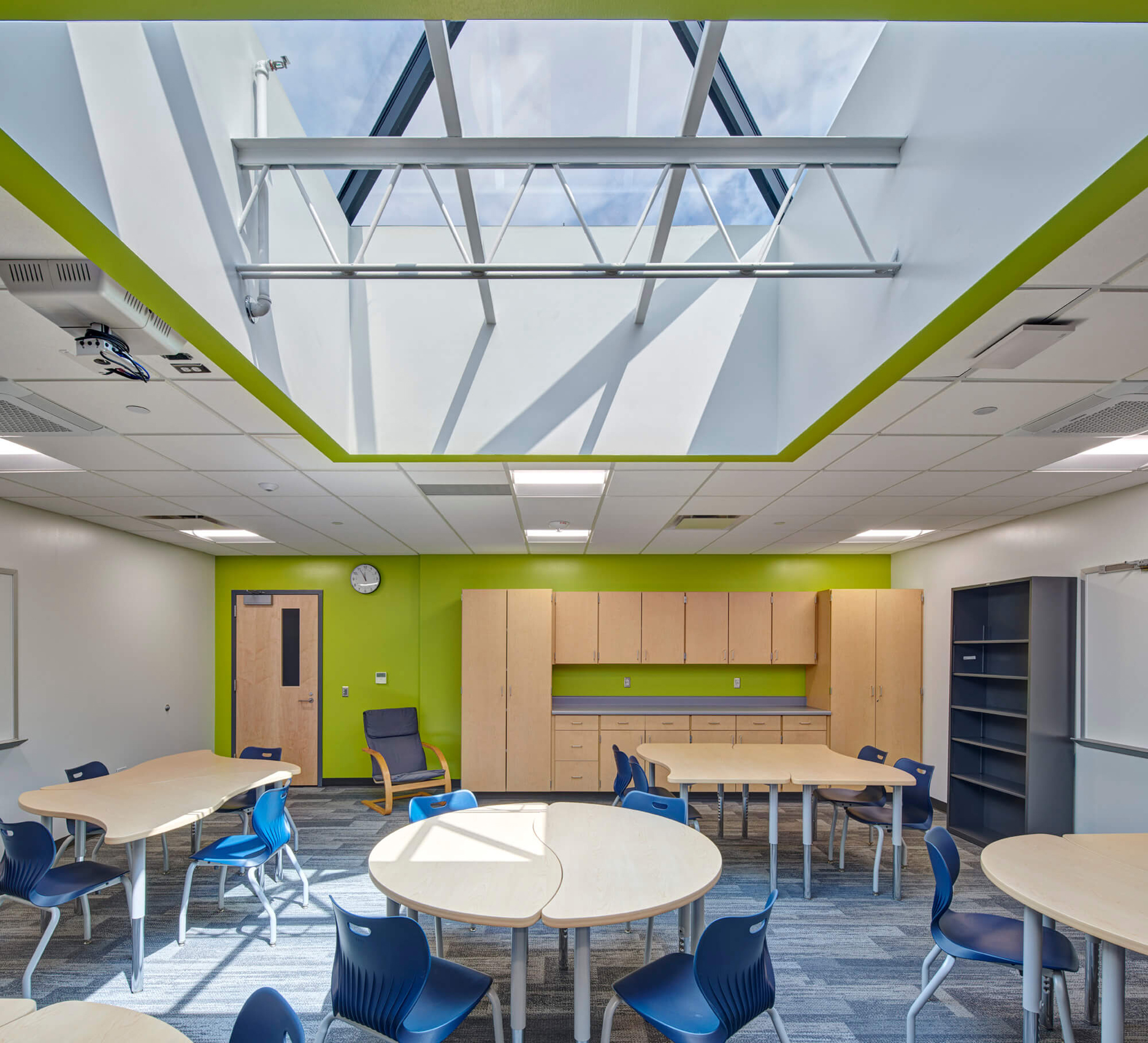 The 21st century principles of collaboration, communication, creativity, and critical thinking were incorporated into the design via the insertion of technology-rich collaboration zones within grade-specific small learning communities. These zones promote cross-disciplinary education and enhance interaction between students and teachers as well as provide a unique setting for learning, social interaction and development.