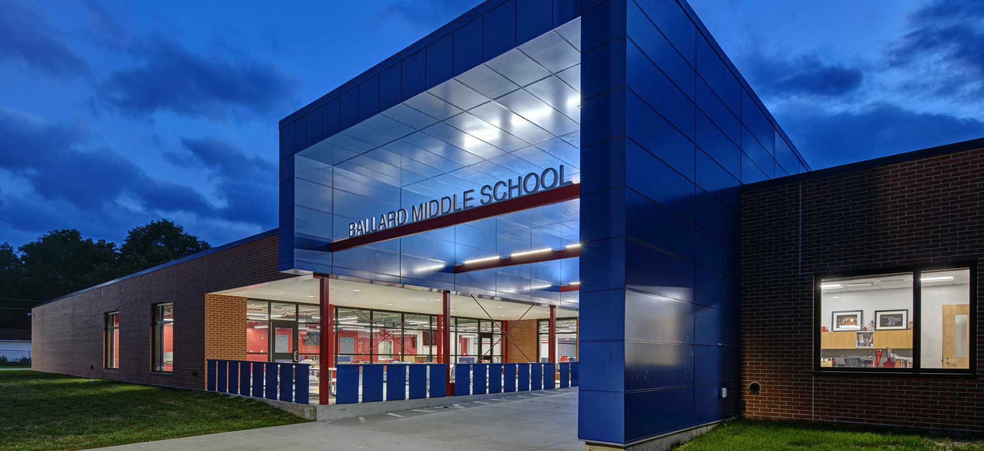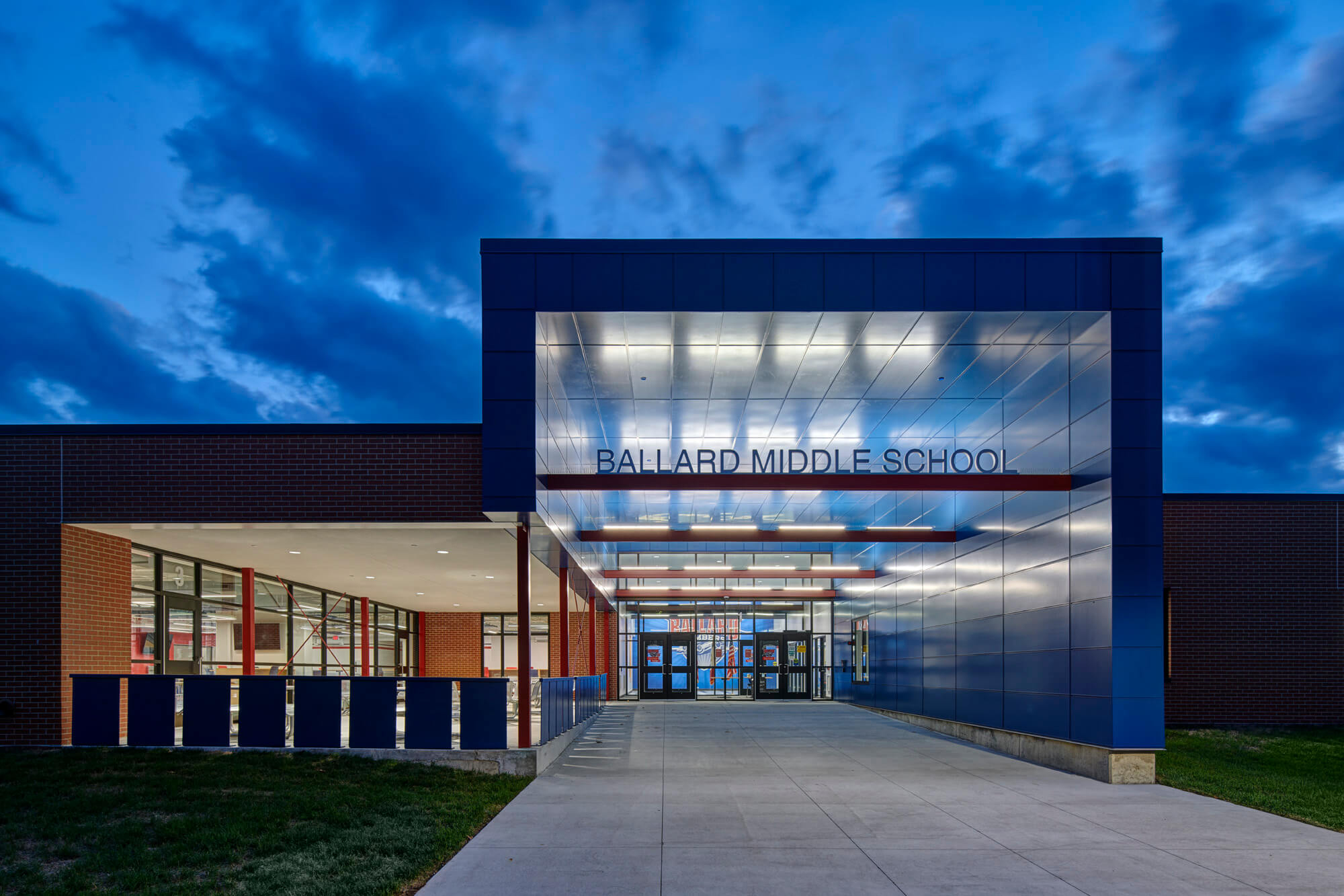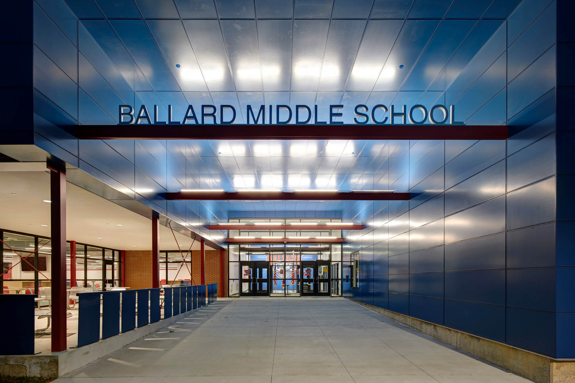 The Ballard Middle School project included a complete renovation of the existing 90,000 sq. ft. facility as well as a new addition that allowed for the expansion of administrative, cafeteria, and kitchen functions and the creation of a new dynamic, secure entrance.