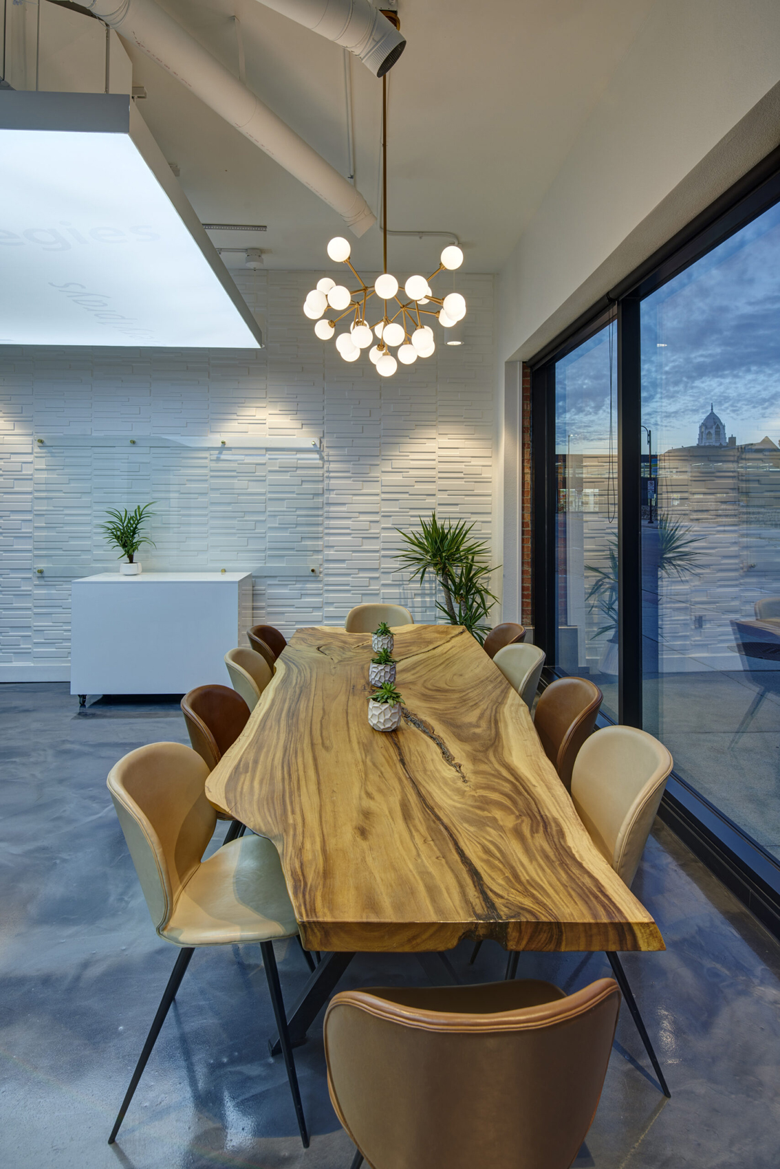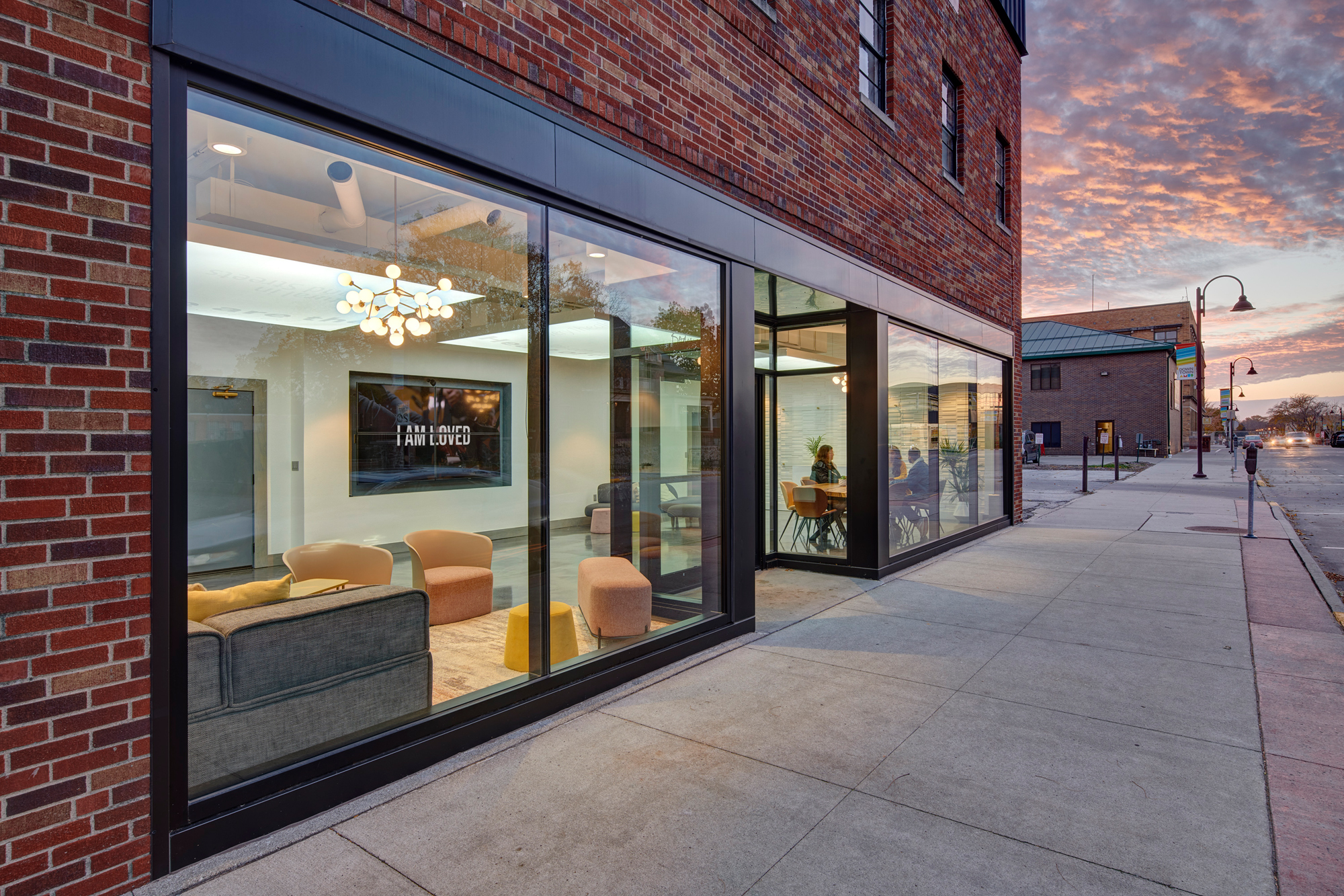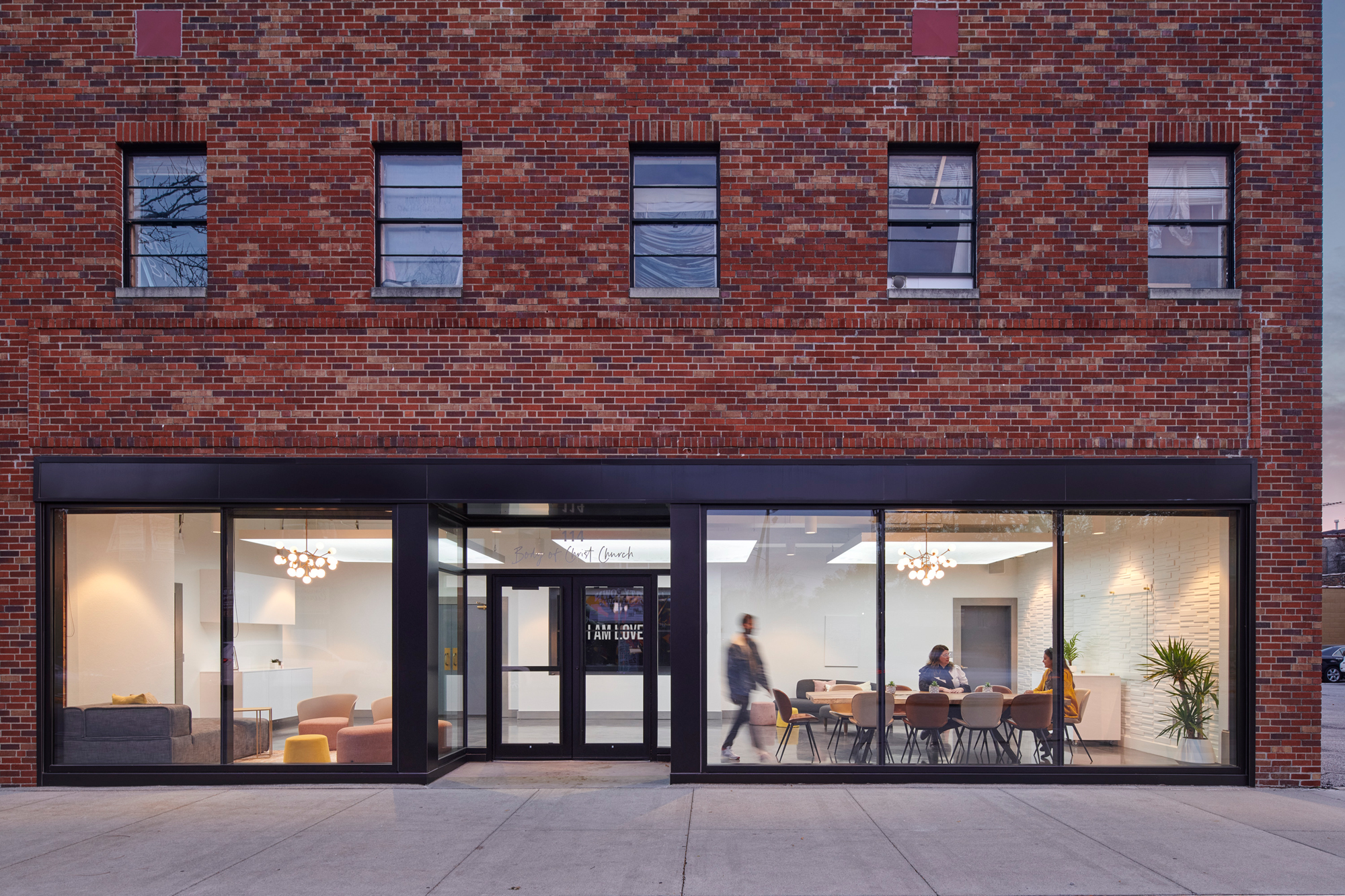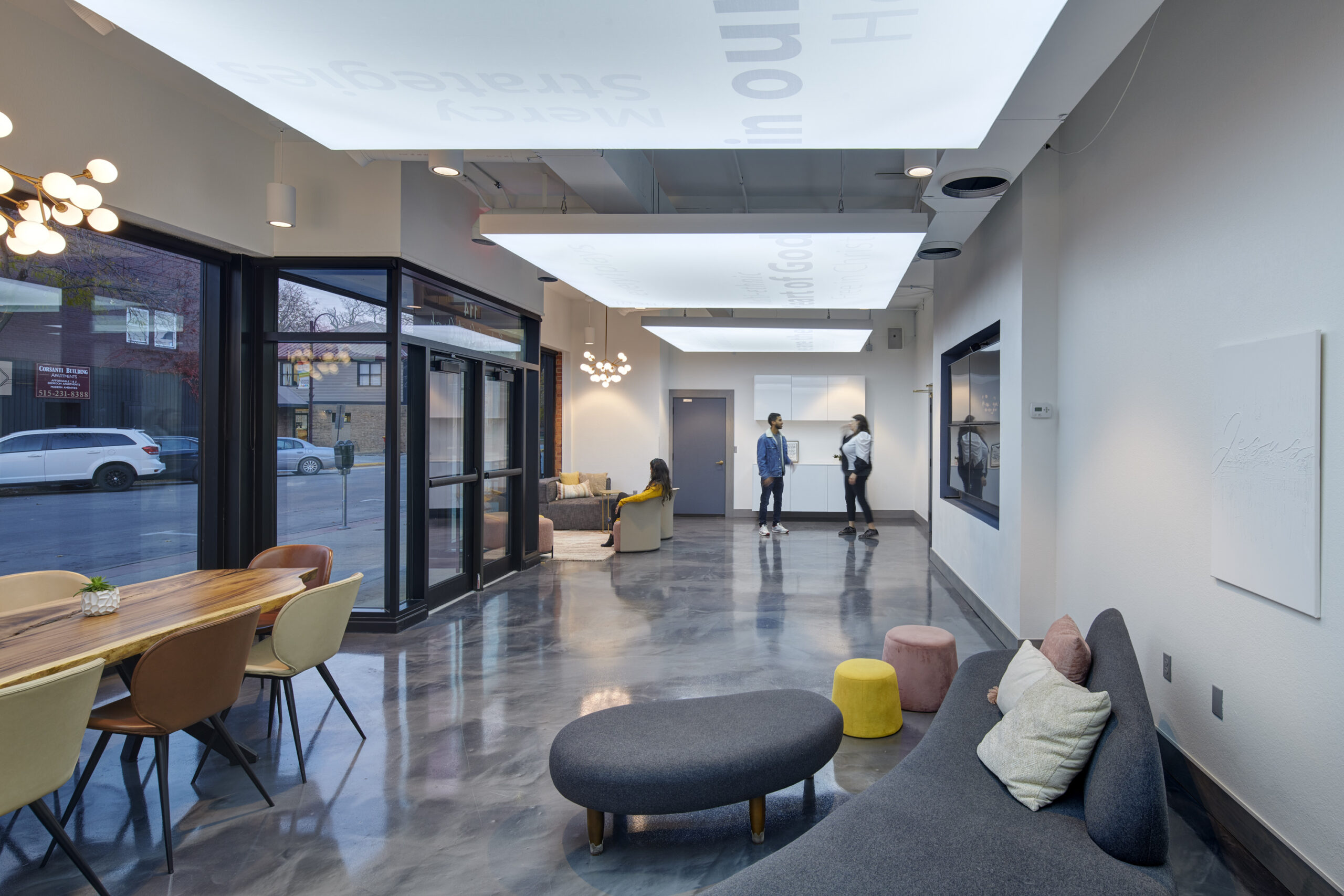 Body of Christ Church’s vision was to redesign their space in a way that reflects their core values. The renovated lobby improves upon the previously closed off entry to a space that is now open and highly visible from the exterior. It serves as a flexible and welcoming space for church members and staff trademarked with new furniture and unconventional design features. The church’s core values are incorporated into illuminated, suspended ceiling elements, and are revealed to a user upon entering the space.