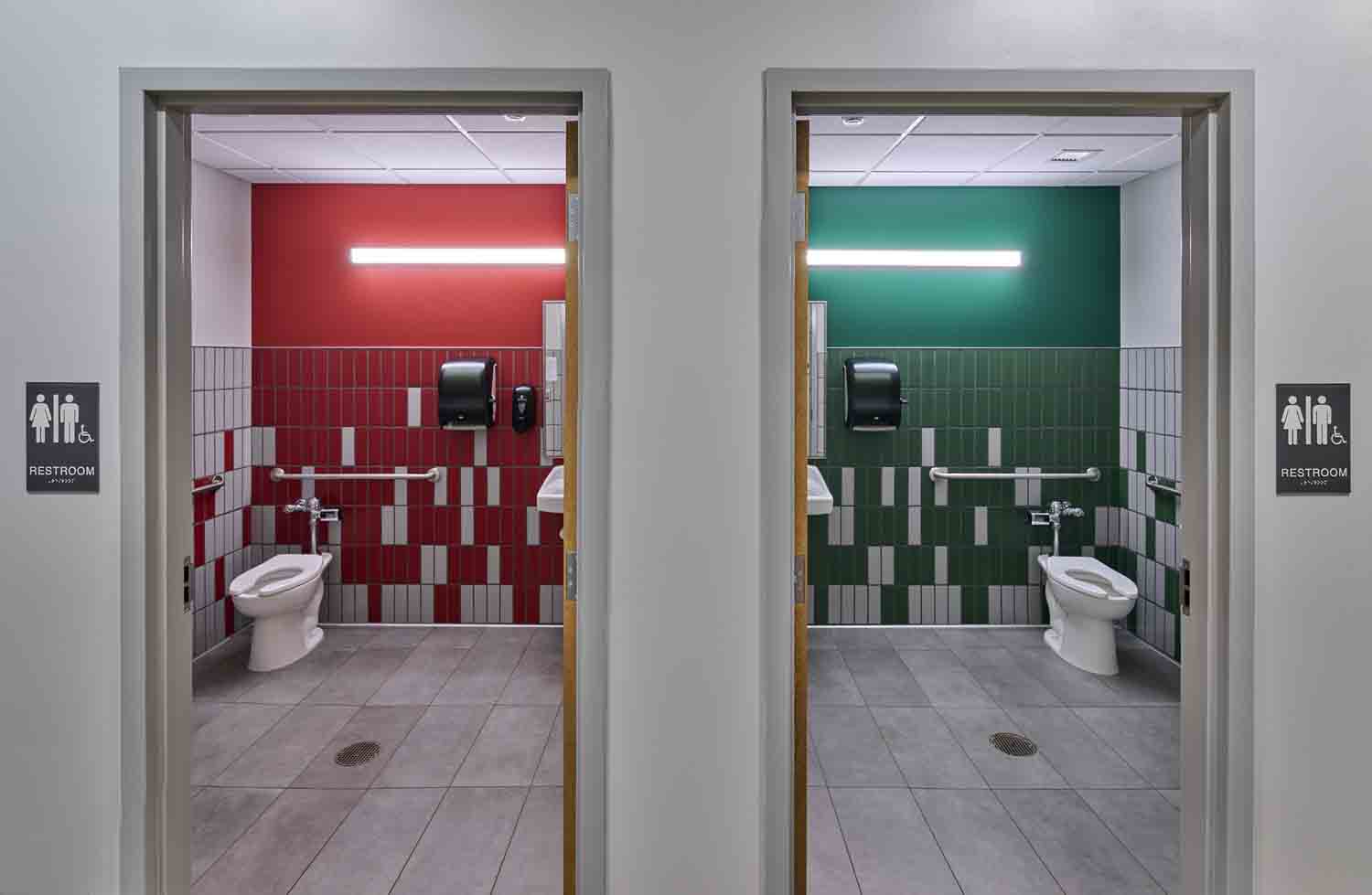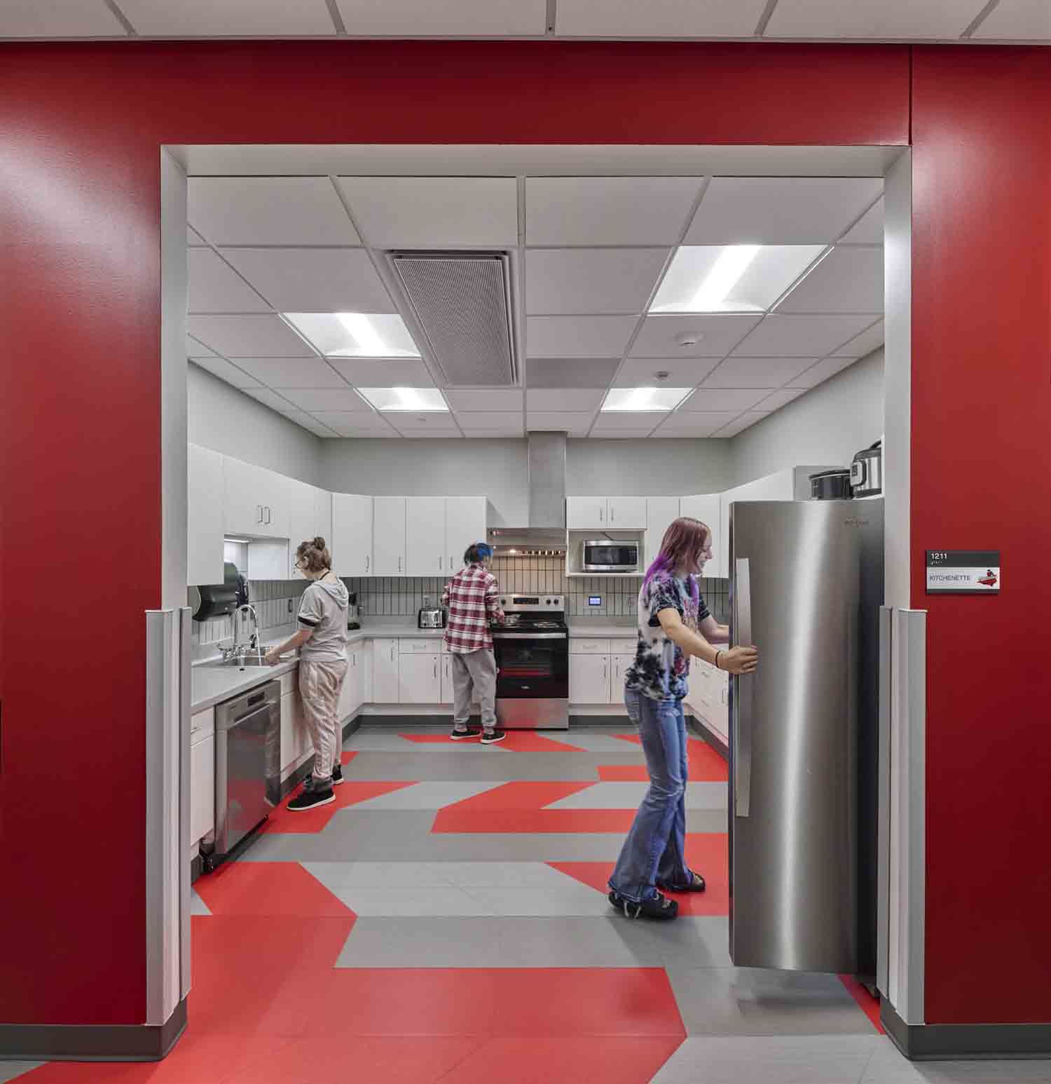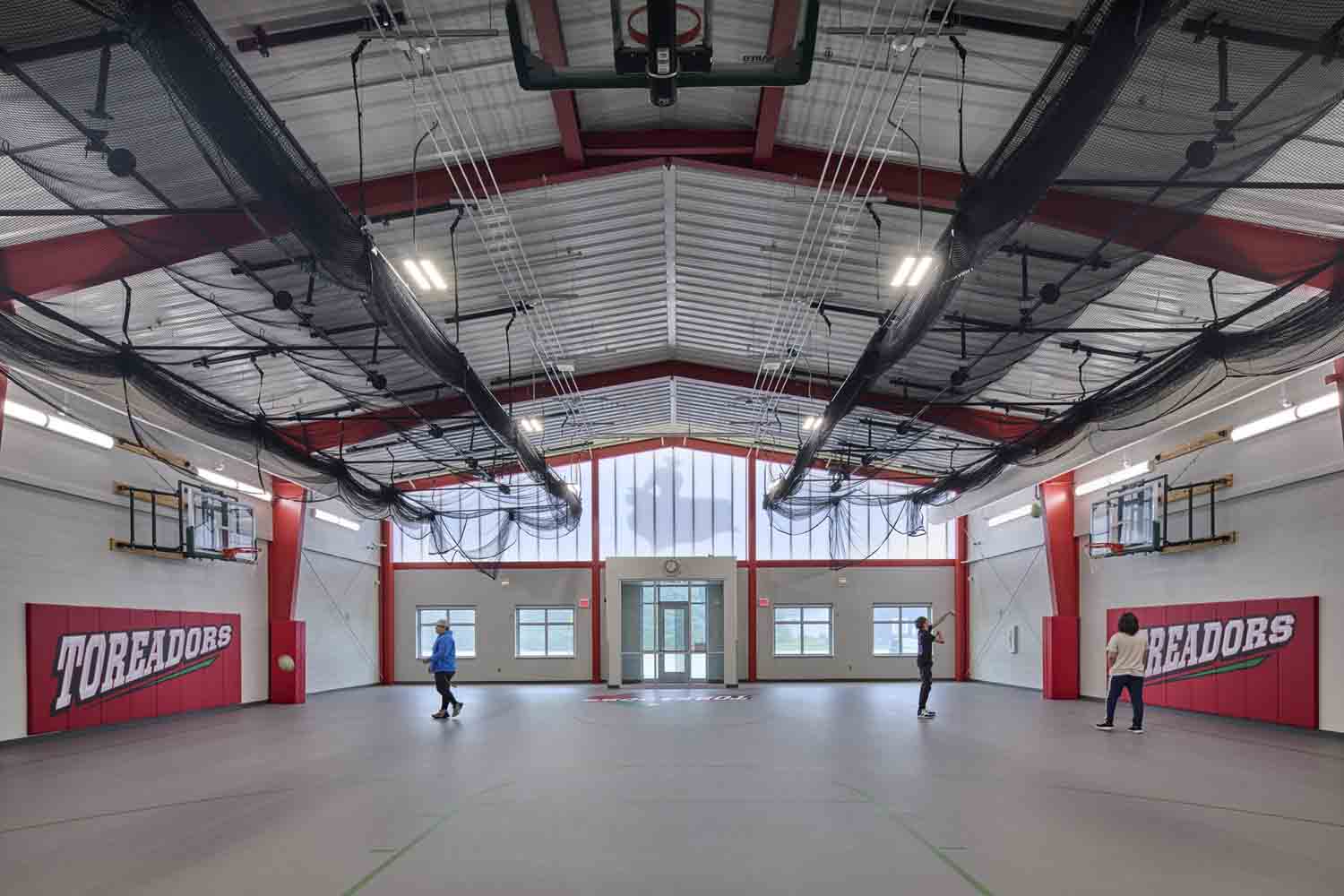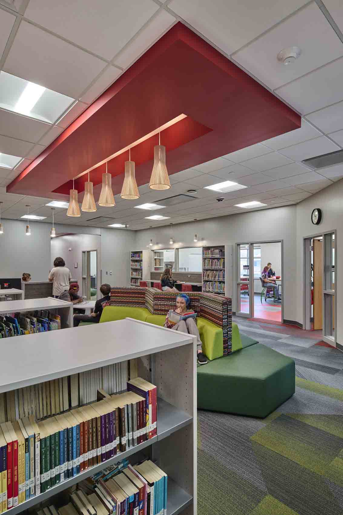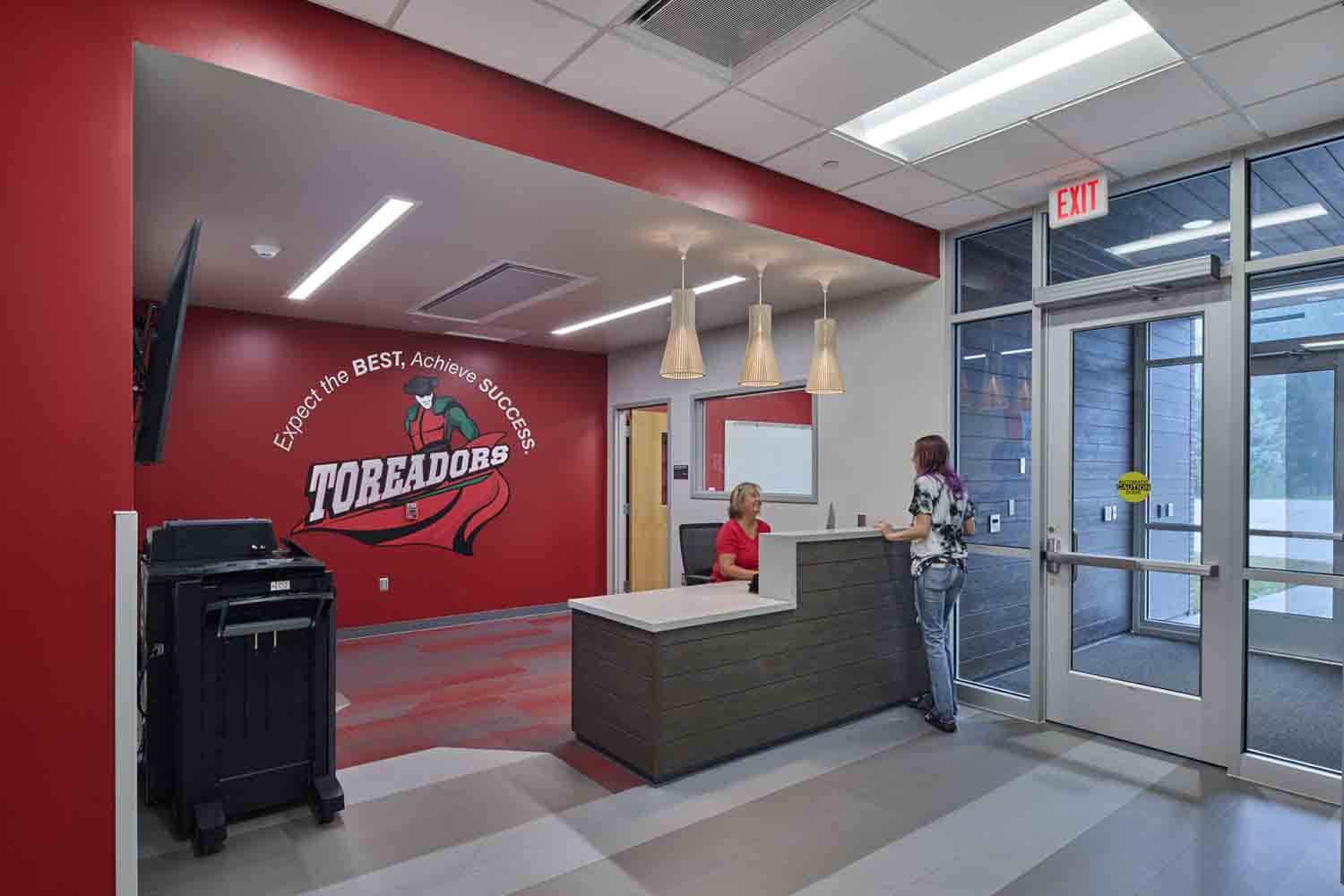 Natural daylight, intuitive circulation, and consistent branding tie the spaces together while each wing meets the unique needs for each program. A central multi-purpose space is utilized by the two programs and the school district.