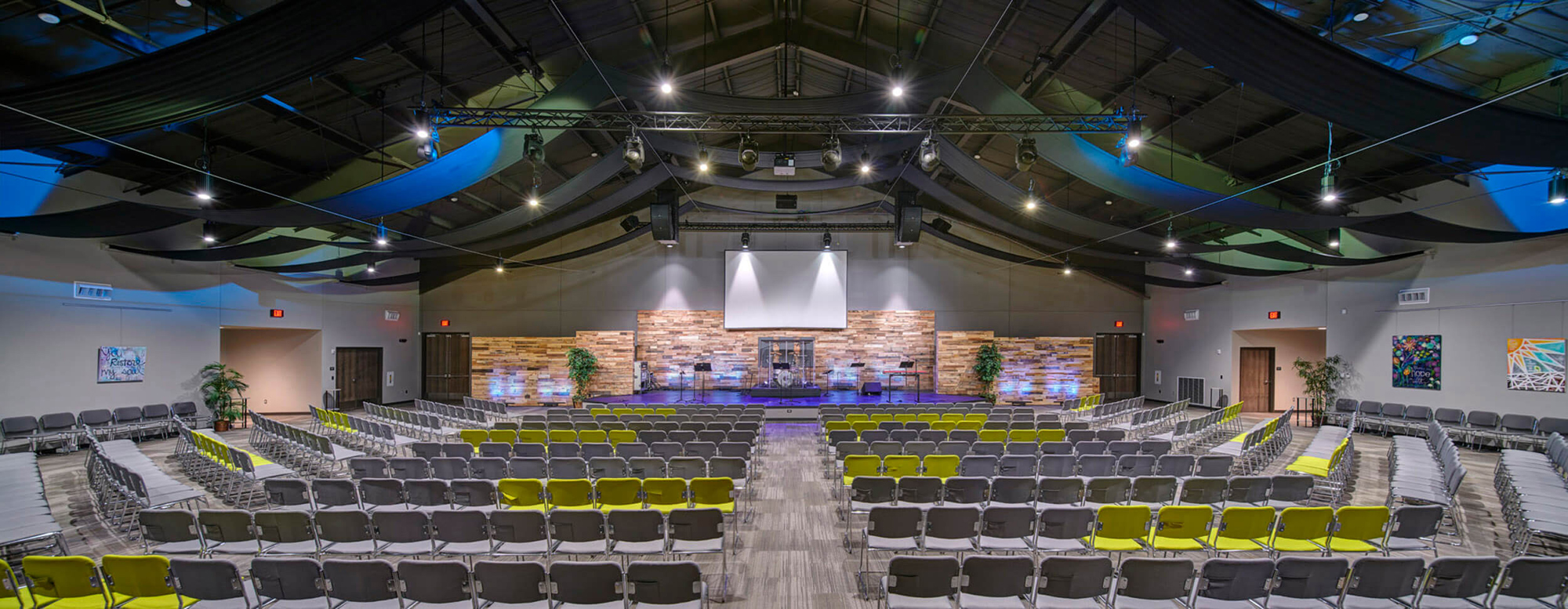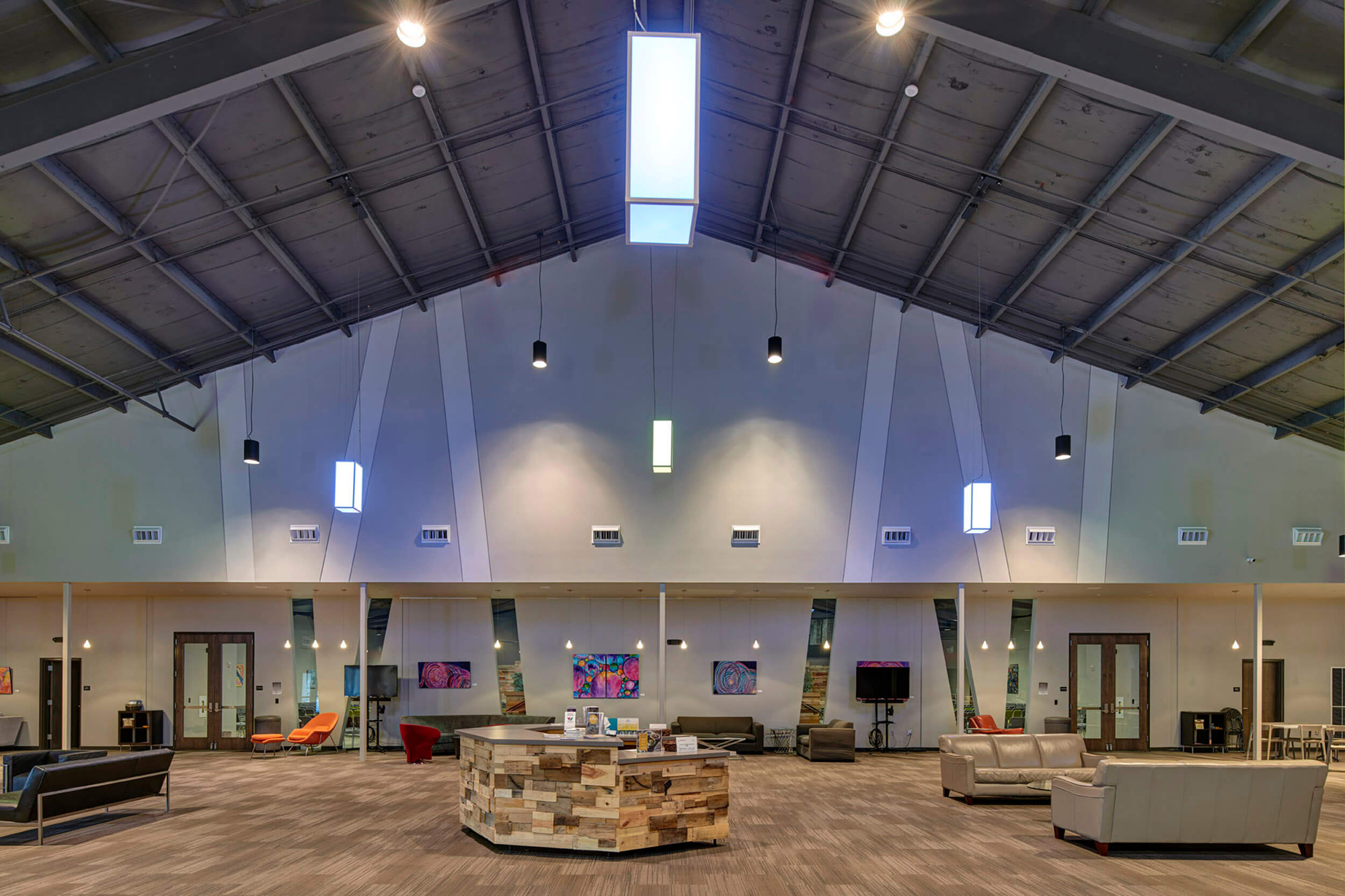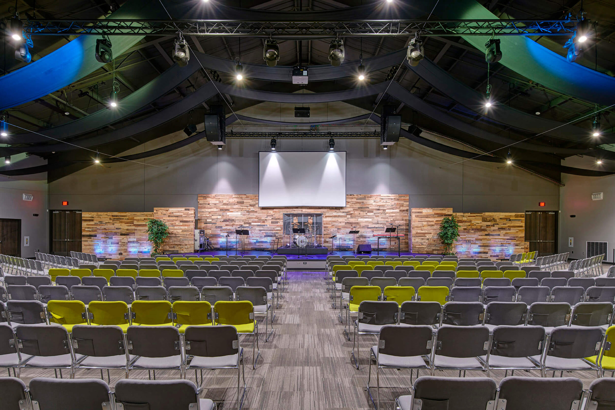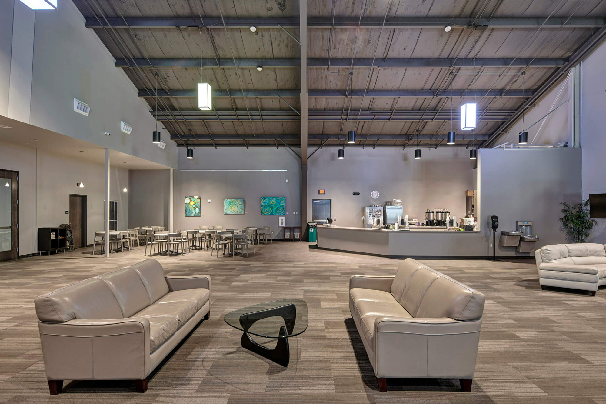 Harvest Vineyard Church in Ames, Iowa, was growing rapidly and needed additional space to provide for ministry and service to the community. They renovated and moved to this 63,000 square foot space in 2017, after it was recently vacated by a local fitness club.