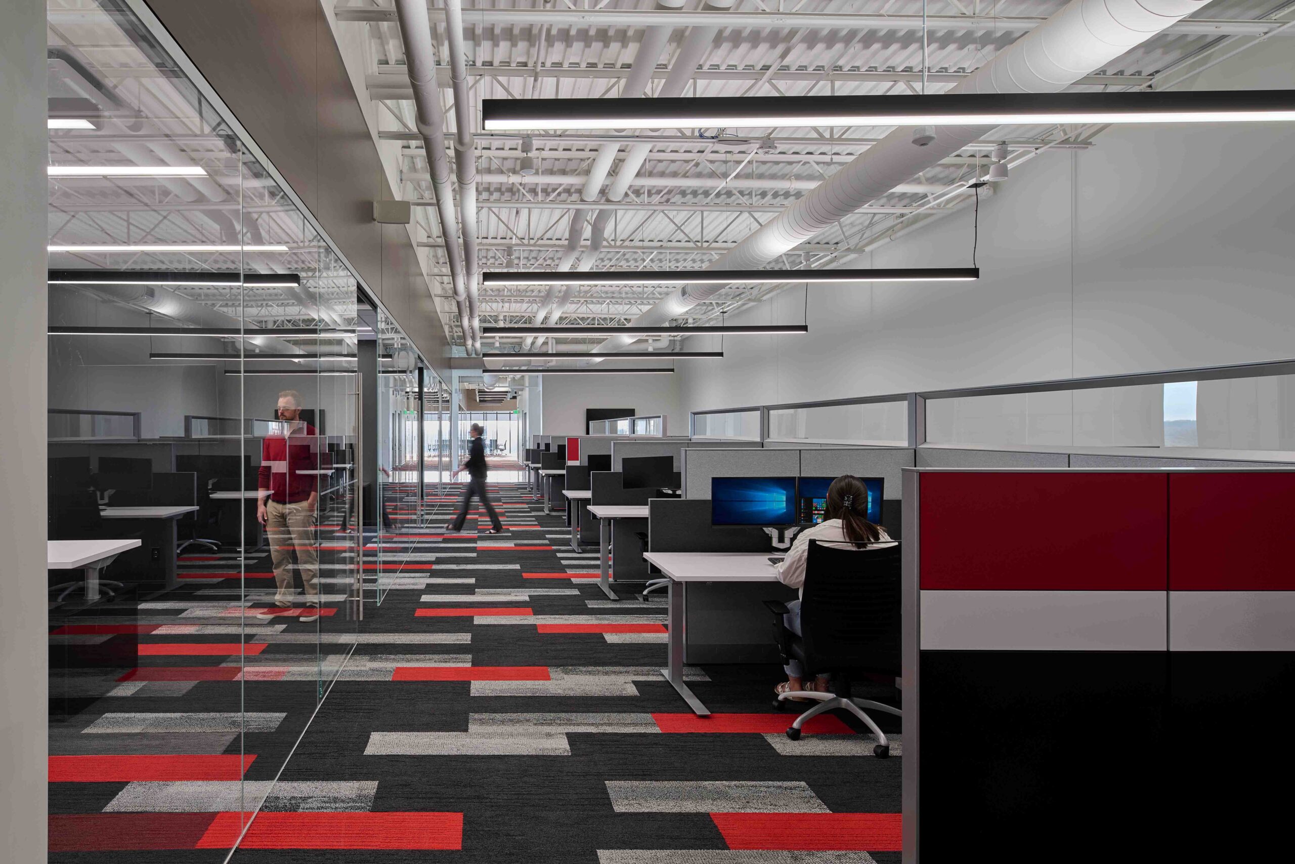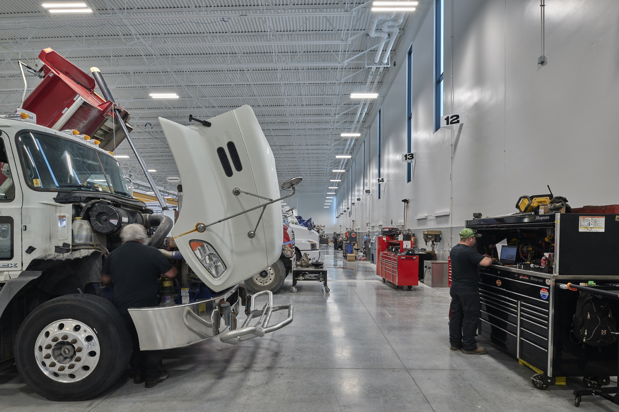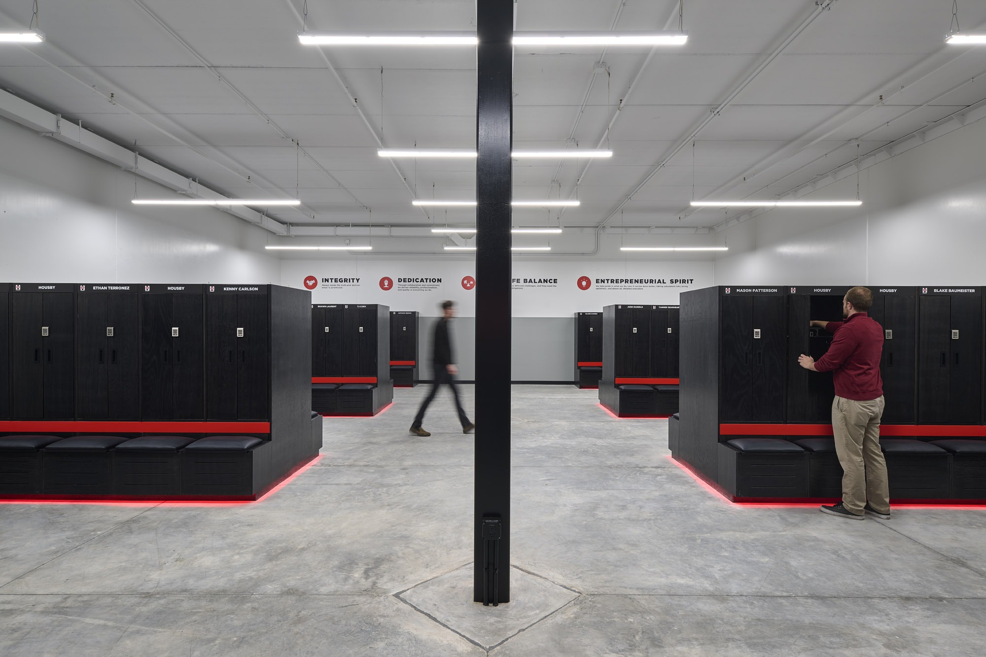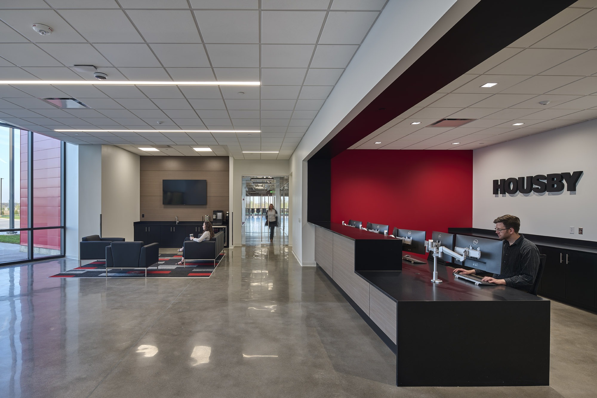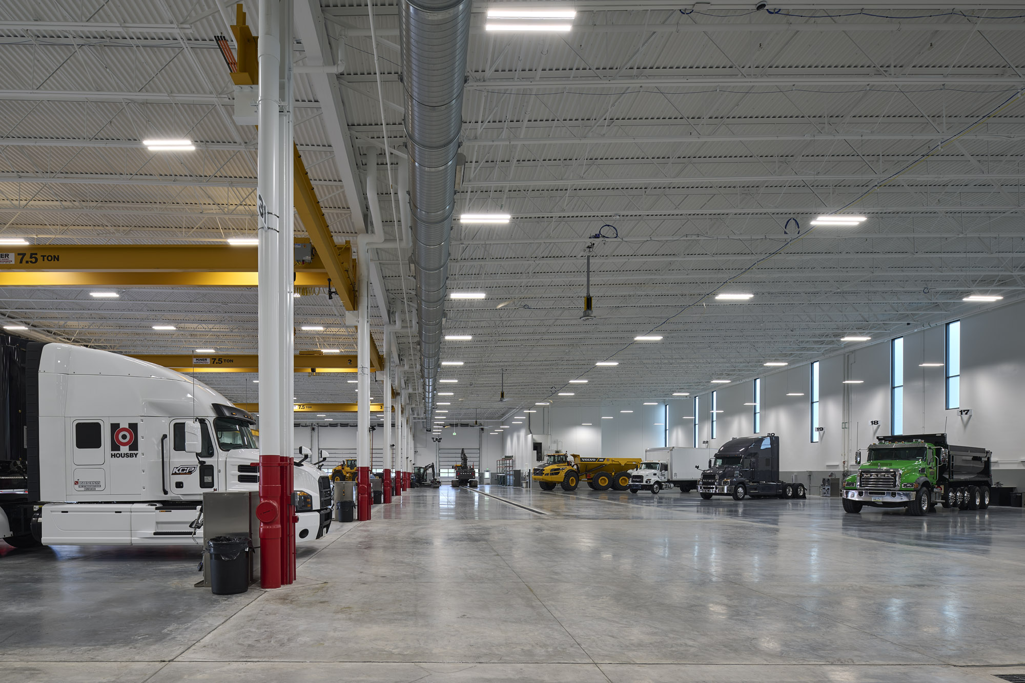 With a commitment to transforming the Housby customer and employee experience through human-centered design, the primary project goals center around improving functionality and maximizing the quality of life of every interacting individual. Specific design strategies implemented focus on maximizing daylight, environmental comfort, enhancing productivity, and workplace safety. The fully conditioned shop features radiant floor heat while all occupied spaces receive natural daylight. To reduce the likelihood of accidents, bridge cranes cover fifty percent of the service bays, and a snow and ice melt system has been installed at exterior service entries.