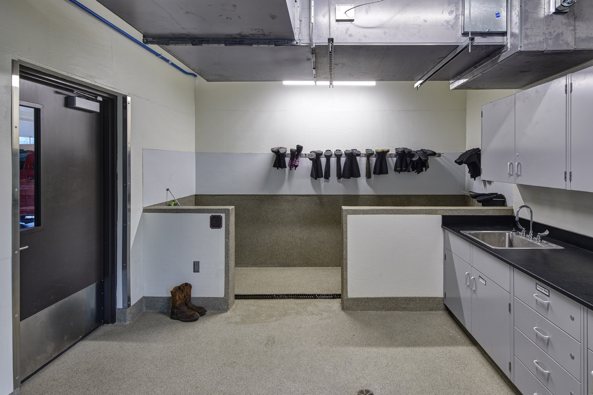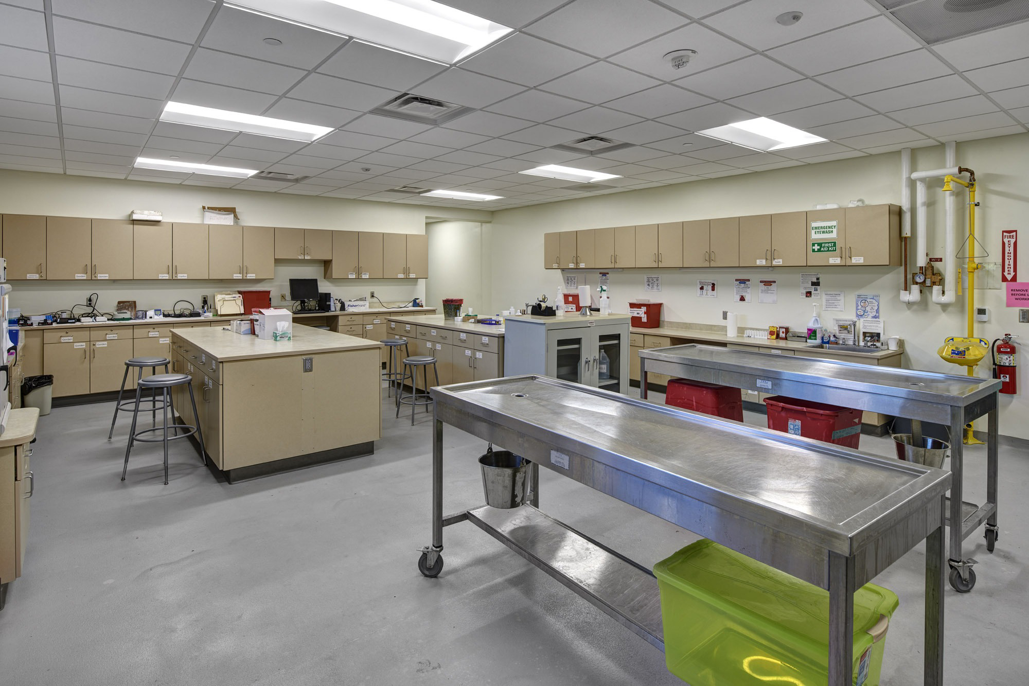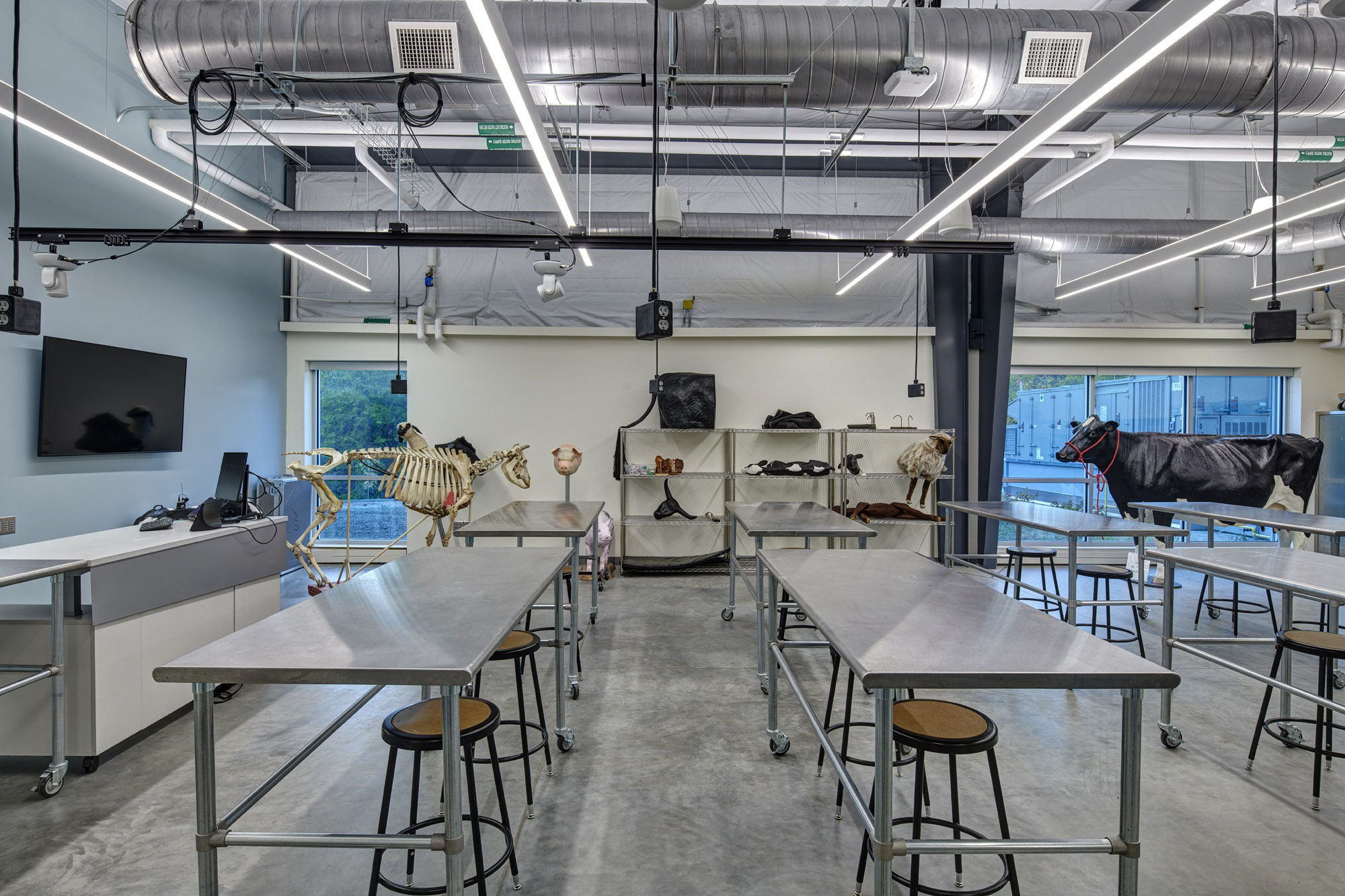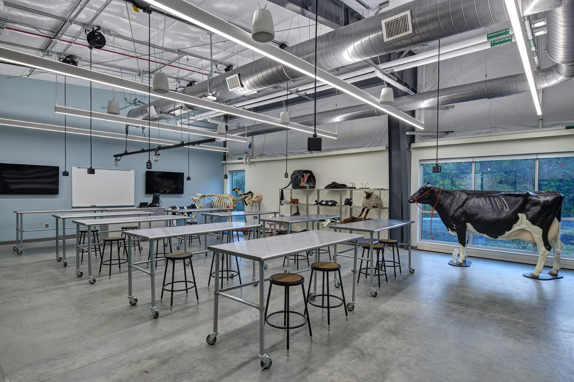 The Field Services department of Iowa State University’s College of Veterinary Medicine is a critical partner to livestock producers in central Iowa and beyond, providing emergency and non-emergency on-farm veterinary and lab testing services. The facility was in need of reconfiguration and expansion to provide a higher level of biosecurity, accommodate more teaching opportunities for students, and give residents and faculty more space to operate. Pathways and spaces in the existing building were adjusted and additions were strategically added to separate clean and dirty pathways for veterinarians and specimens, with special attention paid to storage, cold storage, fomite control, air pressure hierarchies, and back-up power. Visibility was an important consideration, as the building greets visitors when entering the Veterinary Medicine complex. Windows provide natural light for a healthy environment to learn and work, as well as provide visibility into the teaching labs for exposure of the department. The project nearly doubled the existing facility size. Construction was phased so critical services to area farms were not interrupted. Areas improved include housing trucks, decontamination areas, specimen receiving, facilitating specimen storage and pathways, clean and dirty labs, simulation labs, classrooms, offices, and support spaces for the facility.