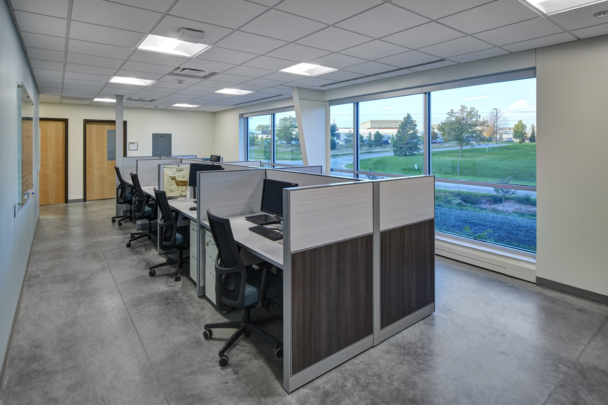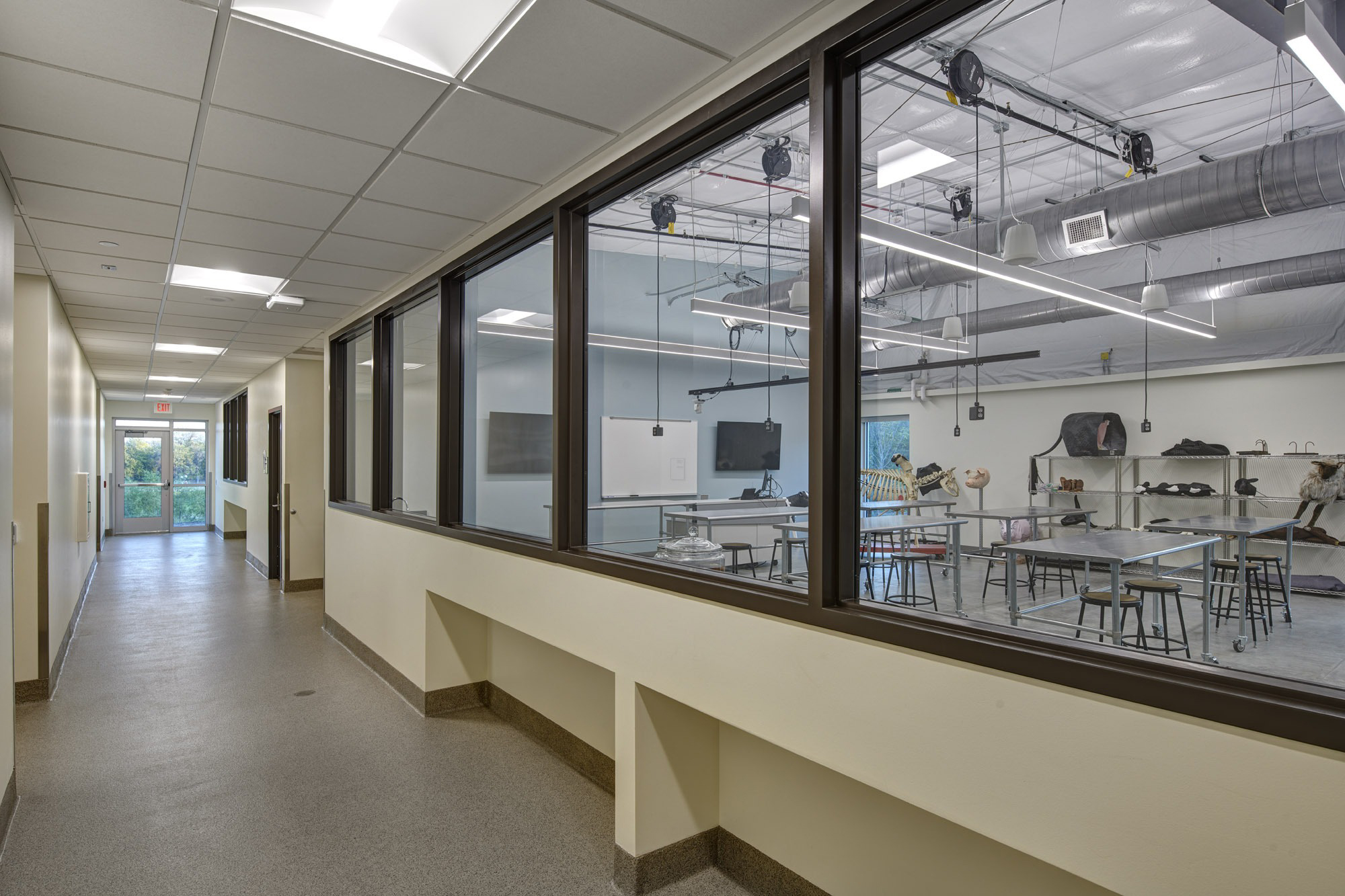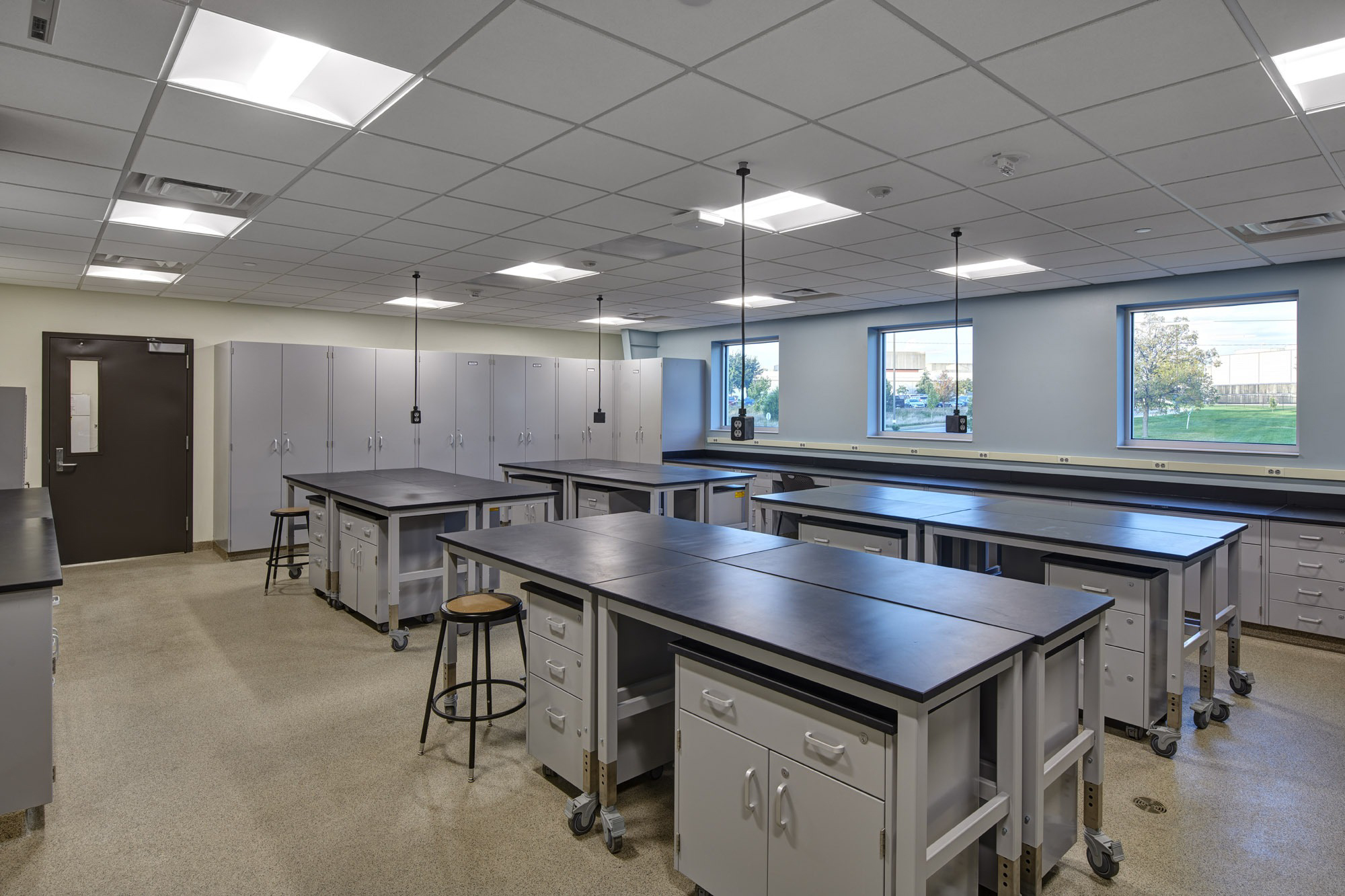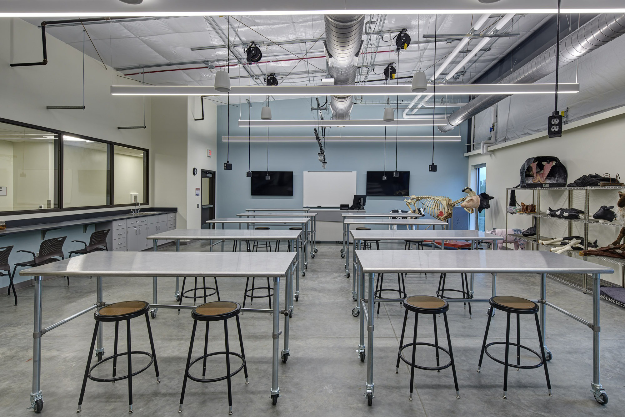 The Field Services department of Iowa State University’s College of Veterinary Medicine is a critical partner to livestock producers in central Iowa and beyond, providing emergency and non-emergency on-farm veterinary and lab testing services. The facility was in need of reconfiguration and expansion to provide a higher level of biosecurity, accommodate more teaching opportunities for students, and give residents and faculty more space to operate. Pathways and spaces in the existing building were adjusted and additions were strategically added to separate clean and dirty pathways for veterinarians and specimens, with special attention paid to storage, cold storage, fomite control, air pressure hierarchies, and back-up power. Visibility was an important consideration, as the building greets visitors when entering the Veterinary Medicine complex. Windows provide natural light for a healthy environment to learn and work, as well as provide visibility into the teaching labs for exposure of the department. The project nearly doubled the existing facility size. Construction was phased so critical services to area farms were not interrupted. Areas improved include housing trucks, decontamination areas, specimen receiving, facilitating specimen storage and pathways, clean and dirty labs, simulation labs, classrooms, offices, and support spaces for the facility.