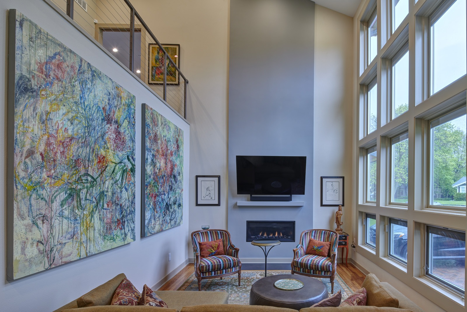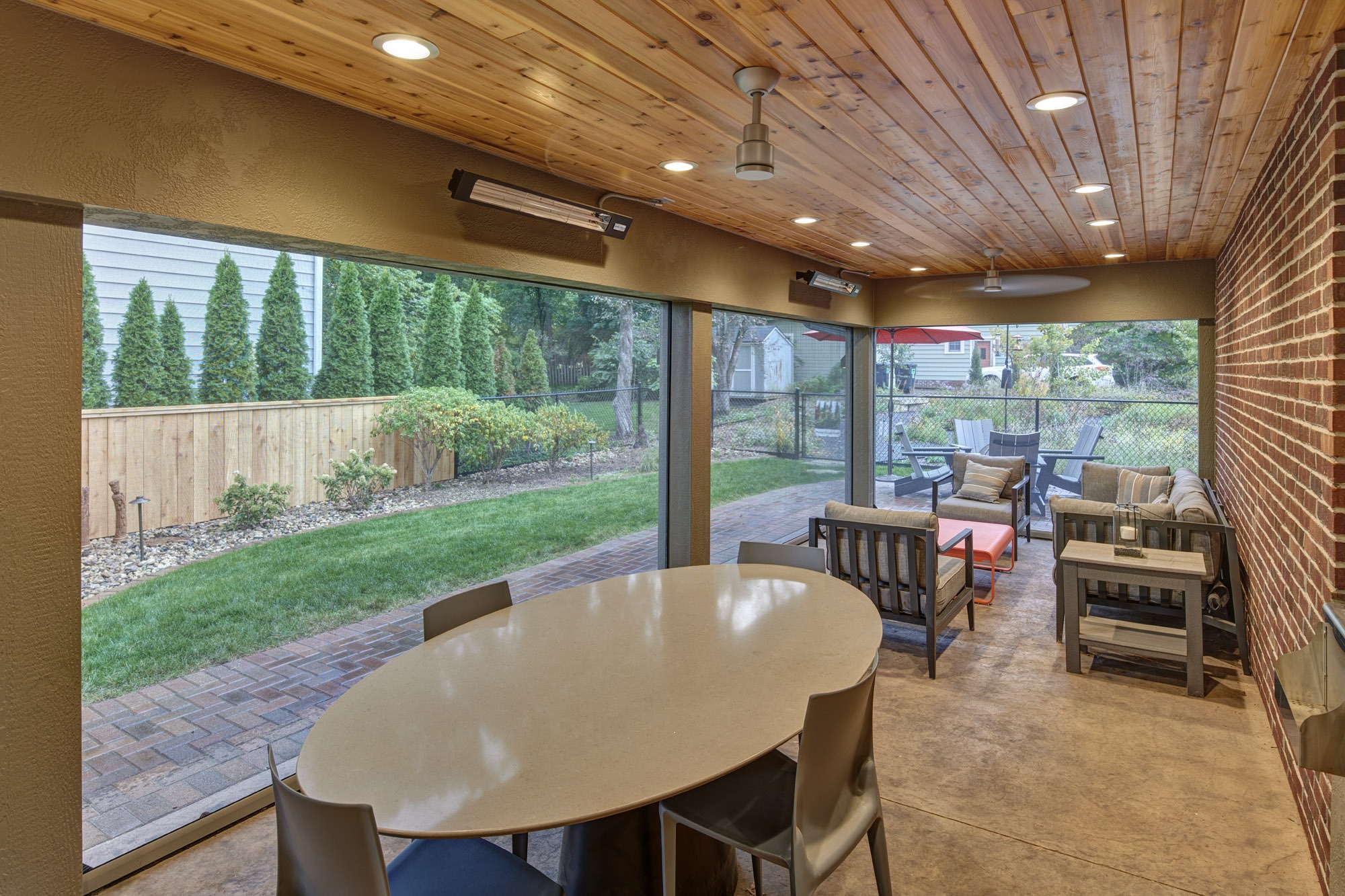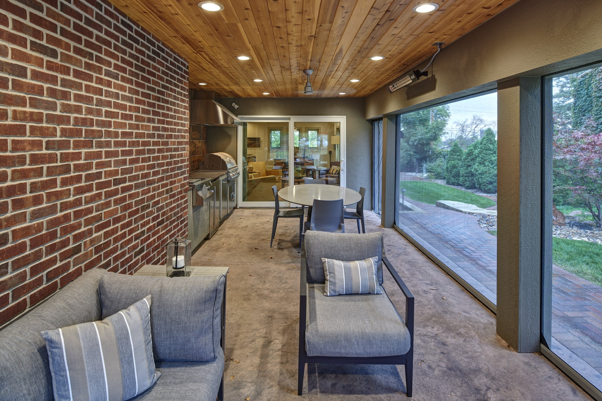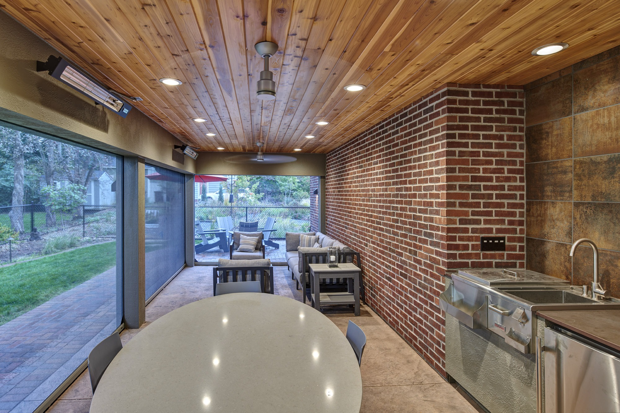 Beyond the addition, special care was taken with the landscape design by incorporating pavers to match the existing, adding a fire pit off the covered space, and creating a prairie garden with a variety of plantings and a rock path.