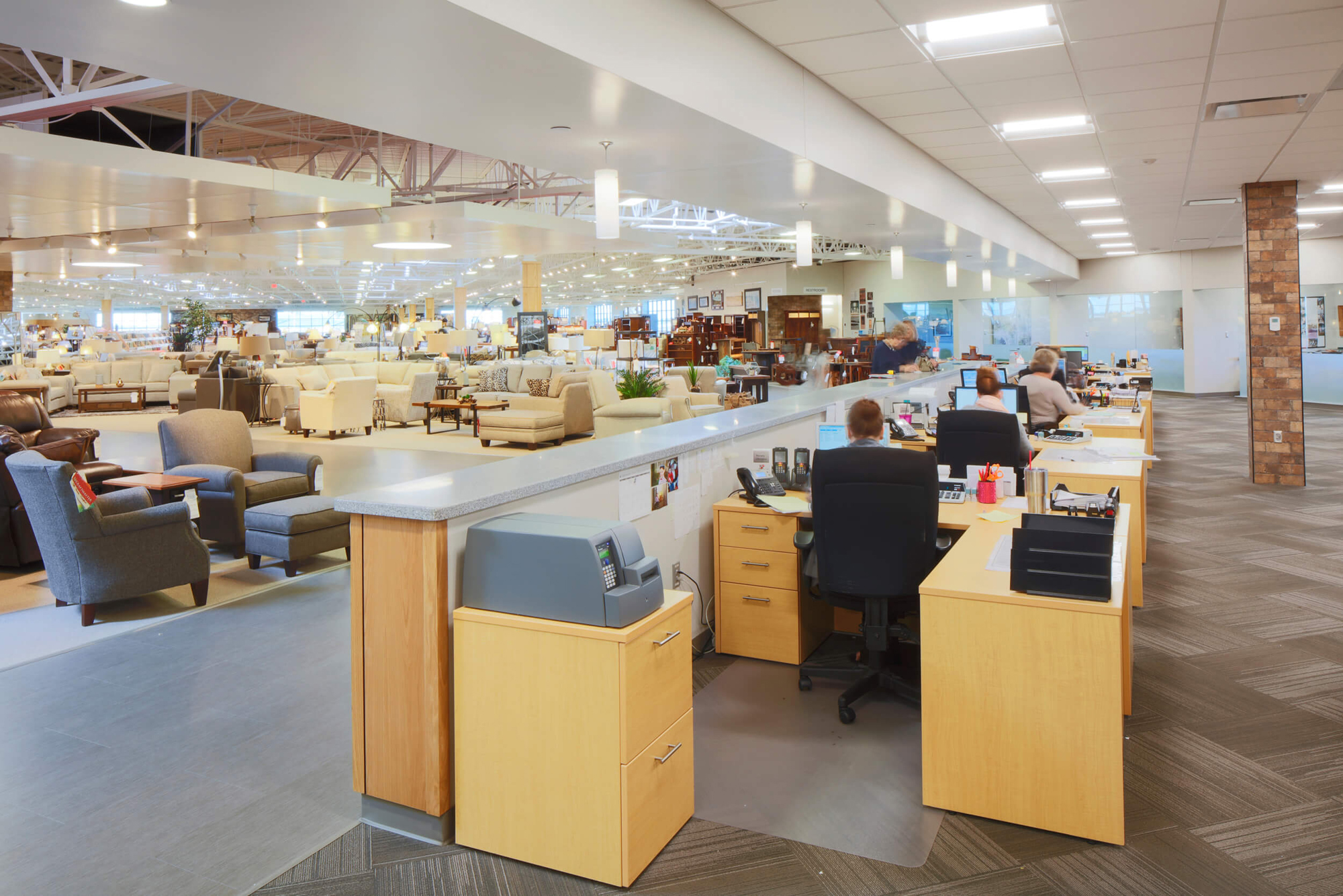 Redekers Furniture was proud to open their new store and warehouse at the highly visible juncture of heavily trafficked highways. The new location is the culmination of a long-standing vision of multiple generations of family ownership, and will serve to keep the legacy of great quality and service alive well into the future. Careful attention was given to the flow of clientele, staff and merchandise. Merchandise is always displayed in the best light possible using a combination of natural and artificial light during the day and artificial light for window shopping in the evenings. The building was designed to increase storage, ease packing/unpacking and improve deliveries.