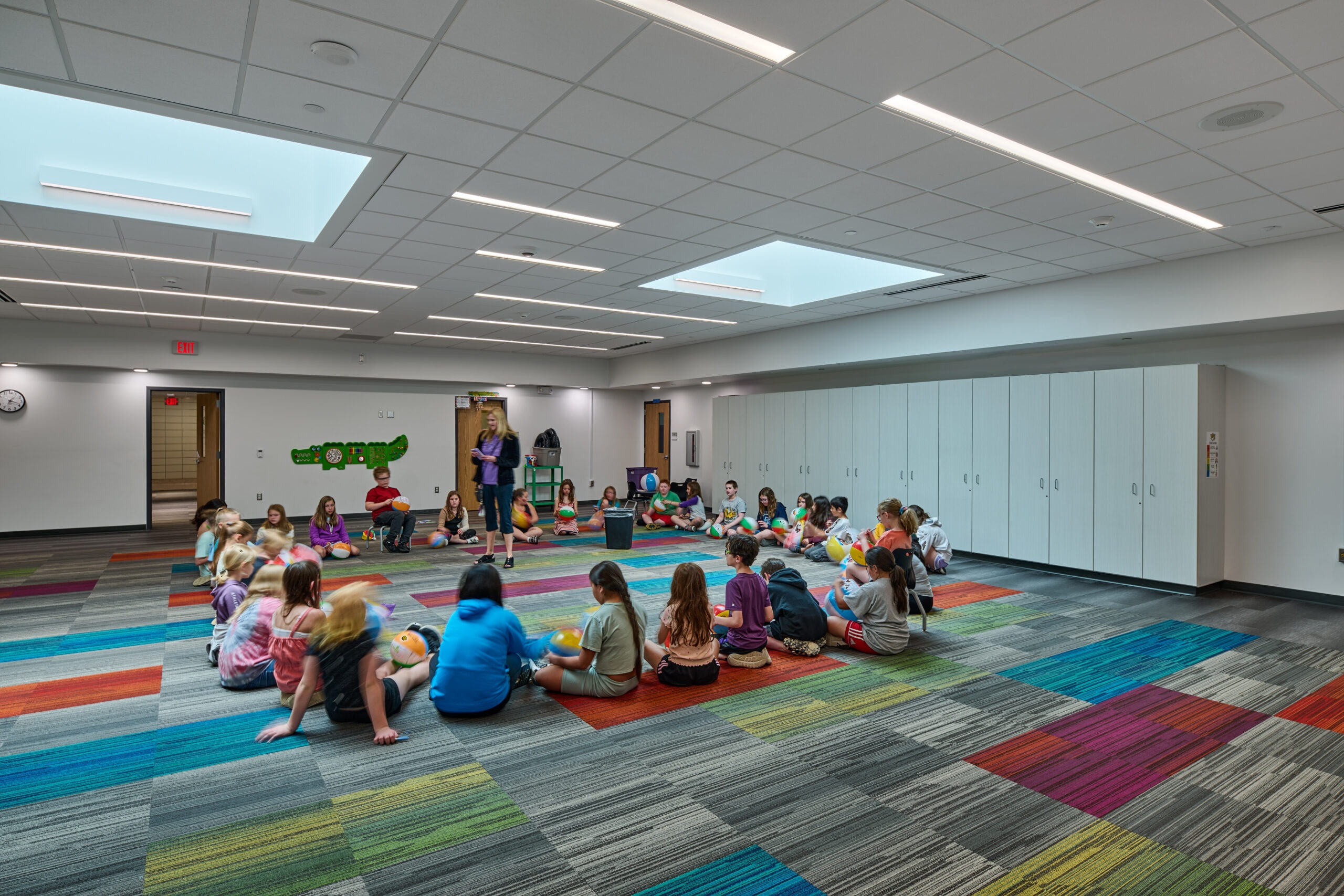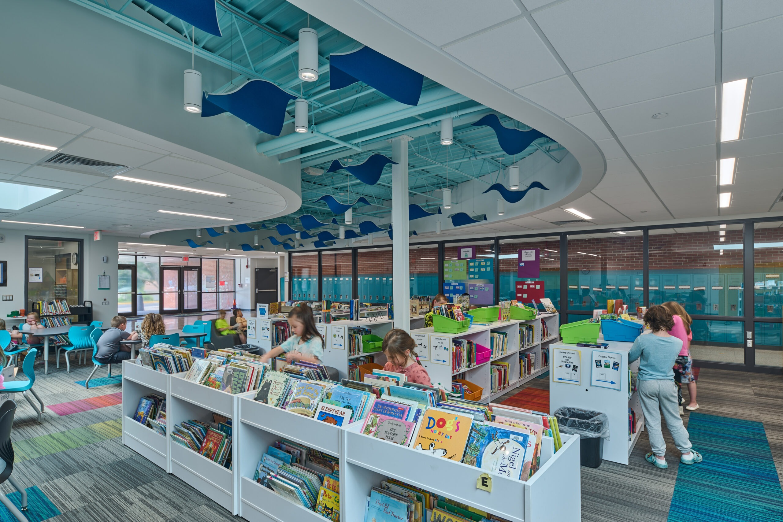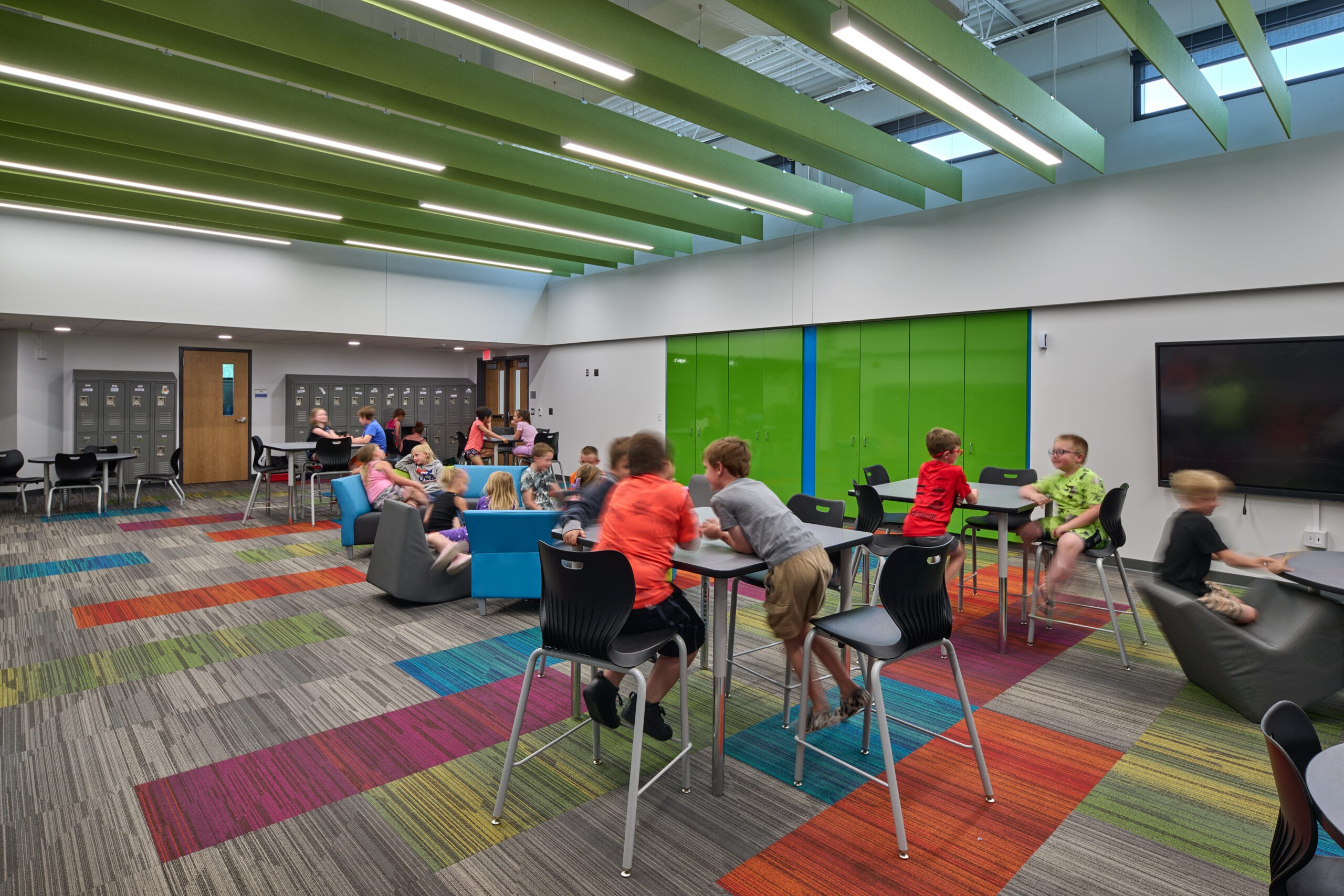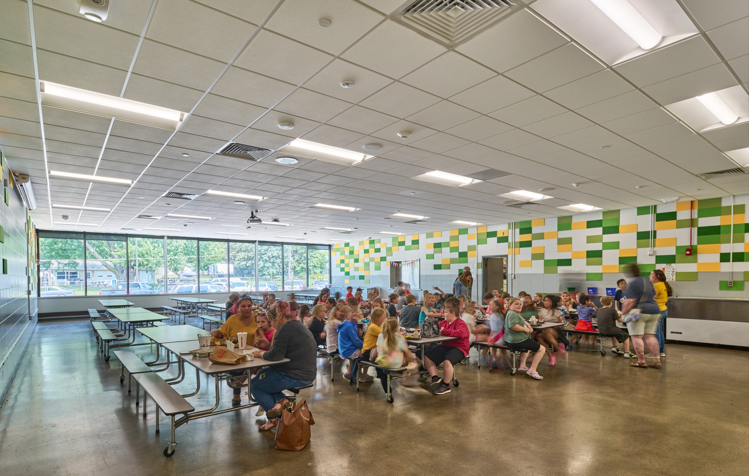 A classroom addition and renovation provides student-centered spaces and updated learning environments. In addition, the media center has been expanded at a new, more central building location while the cafeteria has been improved with natural daylight and better acoustics.