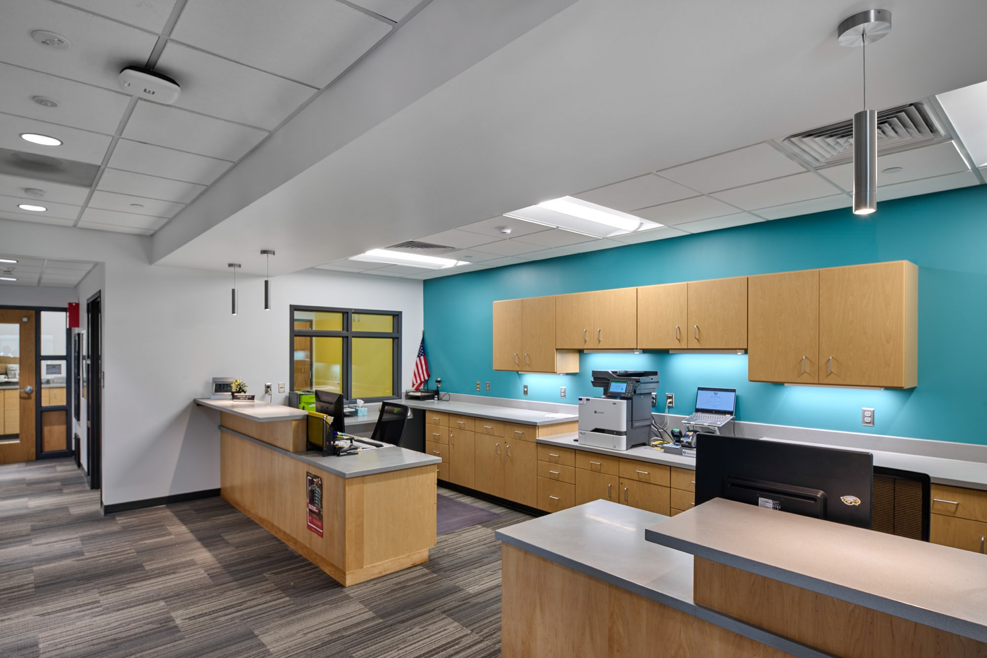 New classrooms and collaboration spaces were added as well as a secure entrance and administrative wing. The renovated areas include classrooms, music rooms, and a guidance office suite.